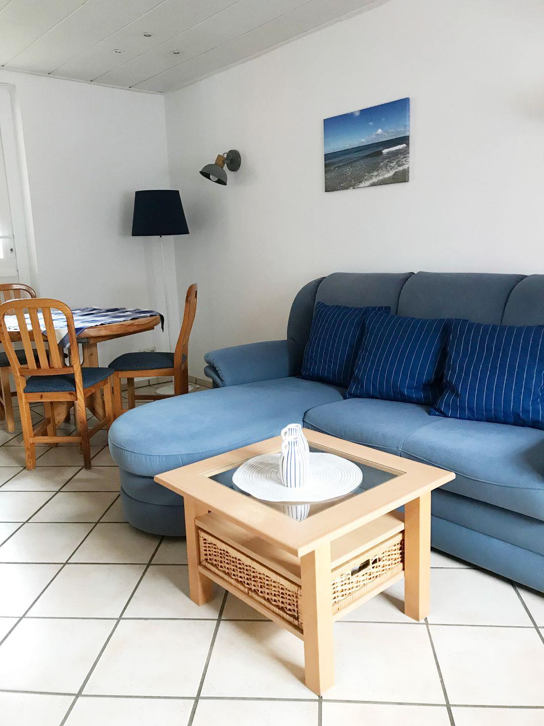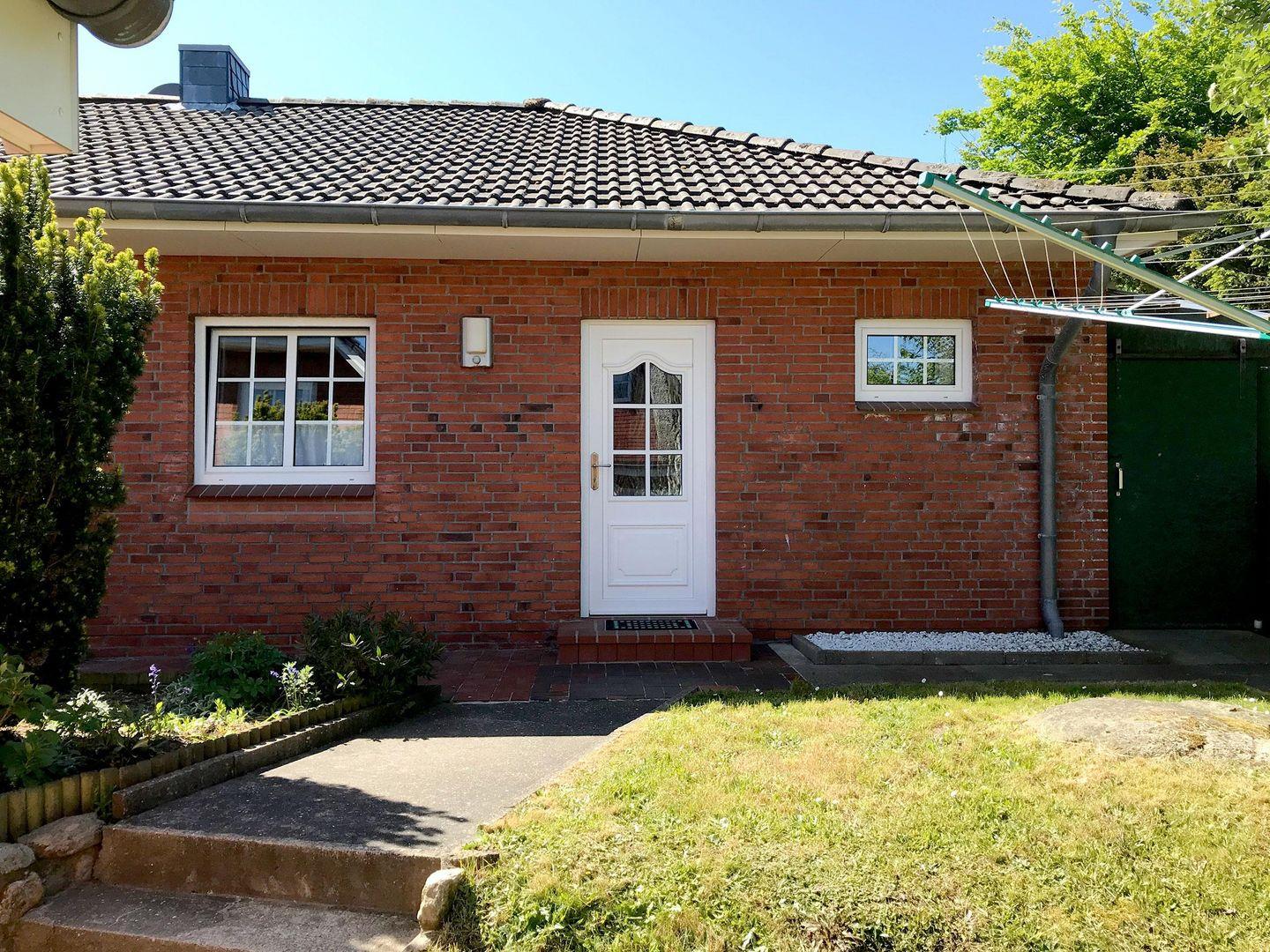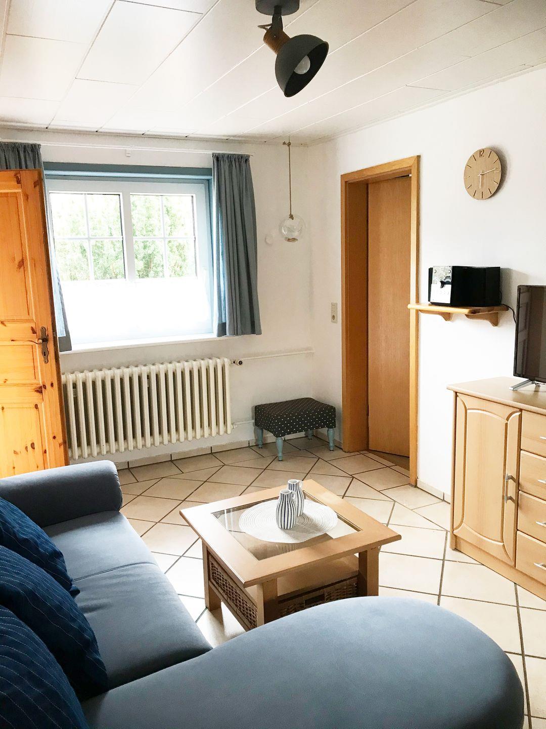 Der Bungalow verfügt über 1 Wohnraum mit WLAN und Sat-TV und offener Küche, 2 Schlafzimmer, 1 Badezimmer mit Dusche und WC; überdachte Süd-Terrasse mit Gartenmöbeln (April bis Oktober).