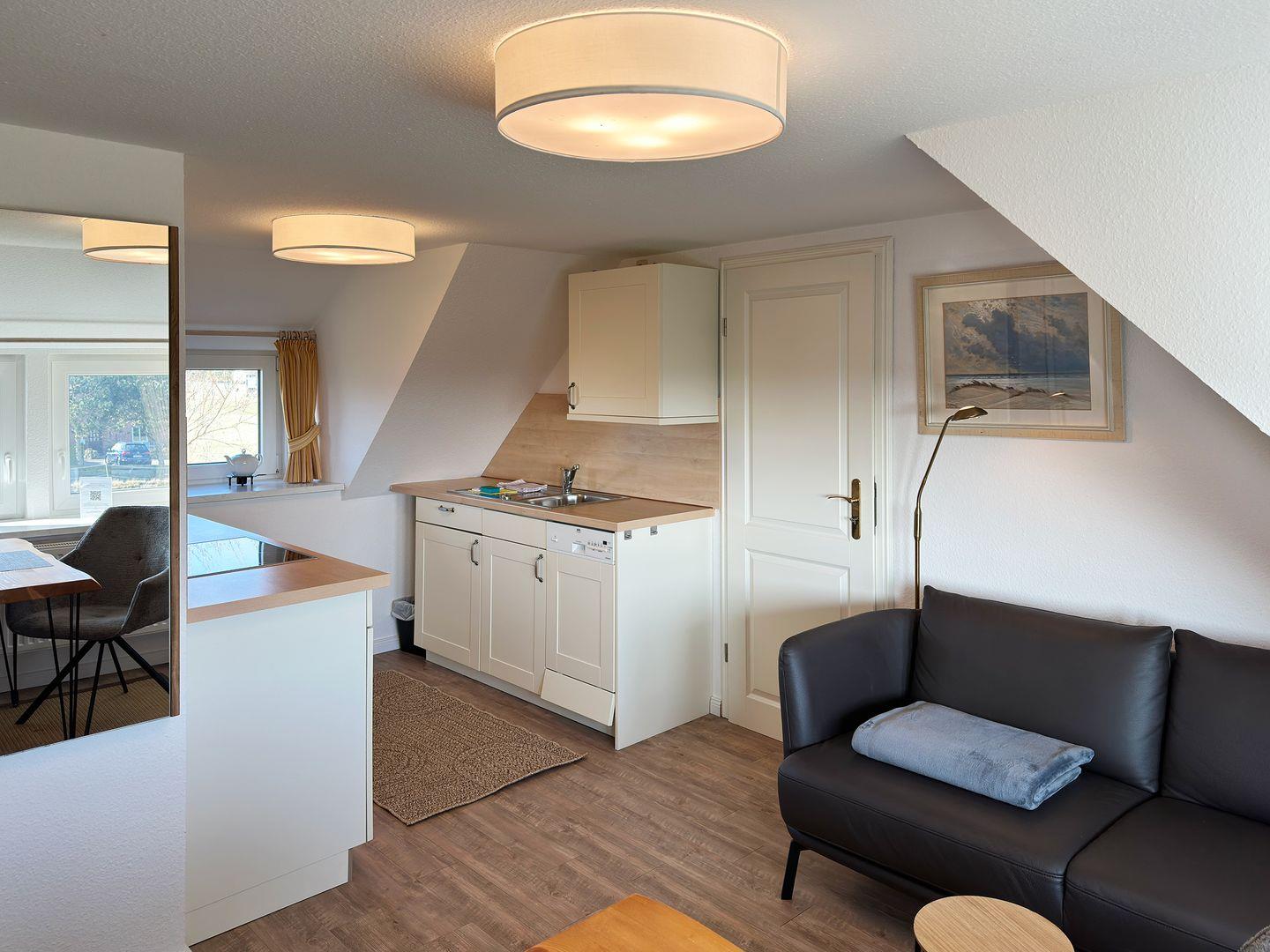 Die Wohnung verfügt über 1 Wohnraum mit offener Küche, Sat-TV, 1 Schlafzimmer, 1 Badezimmer mit Dusche und WC, 1 Strandkorb im Garten (April bis Oktober). Auf dem Grundstück befindet sich ein Wäscheplatz. Bei Bedarf können Sie die Waschmaschine und den Trockner im Madelwai 7, Haus Strunluuper, nutzen.