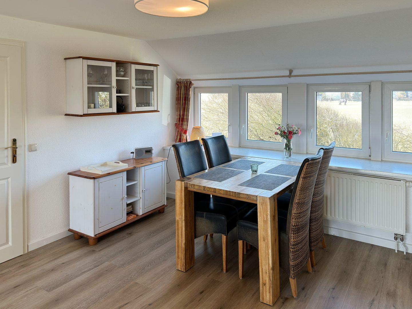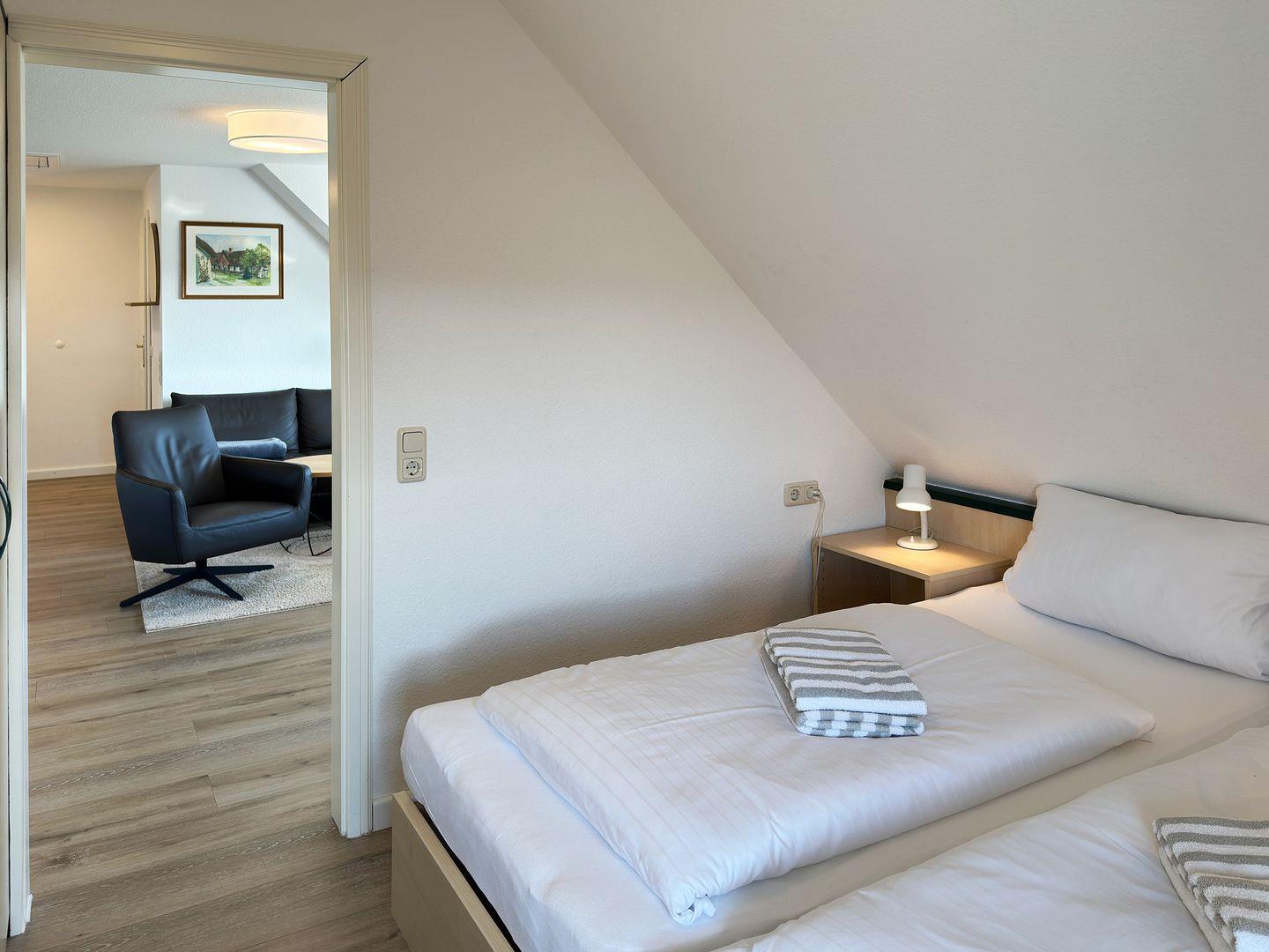 Die Wohnung verfügt über 1 Wohnraum mit Sat-TV, 1 Küche, 2 Schlafzimmer, 1 Badezimmer mit Dusche und WC, 1 Strandkorb im Garten (April bis Oktober). Auf dem Grundstück befindet sich ein Wäscheplatz. Bei Bedarf können Sie die Waschmaschine und den Trockner im Madelwai 7, Haus Strunluuper, nutzen.
