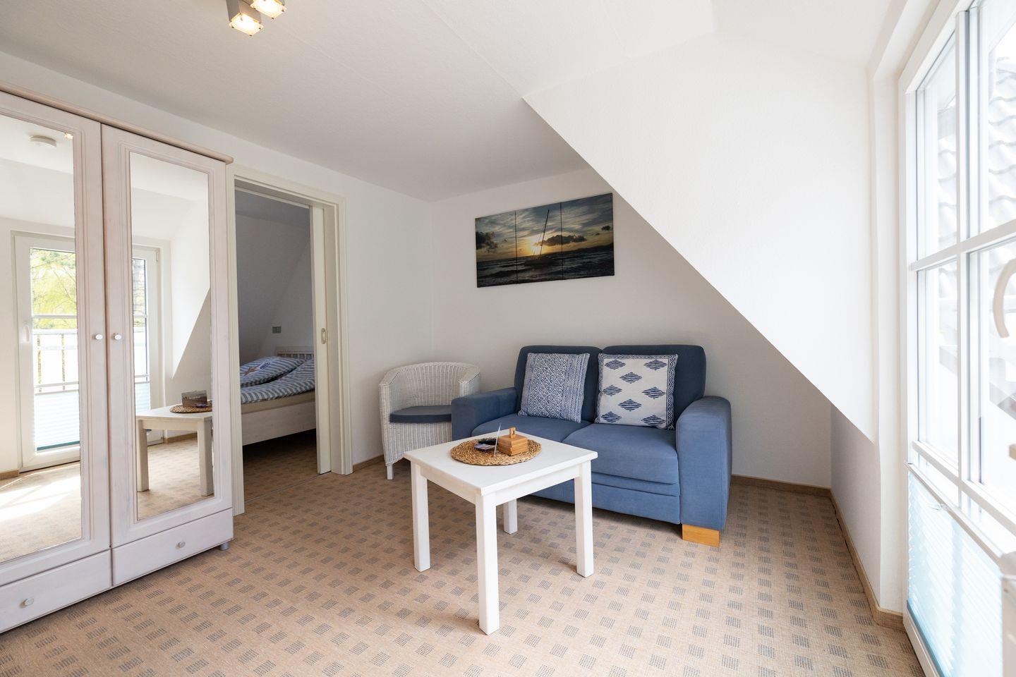 Die Wohnung verfügt über 1 Wohnraum mit WLAN, Sat-TV, 1 Küche, 1 Schlafzimmer, 1 Badezimmer mit Dusche und WC; ein Süd-Balkon mit Gartenmöbeln (April bis Oktober). Eigener PKW-Stellplatz am Haus.