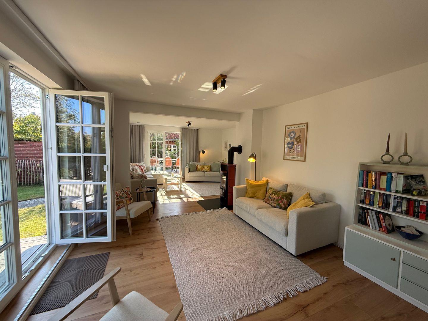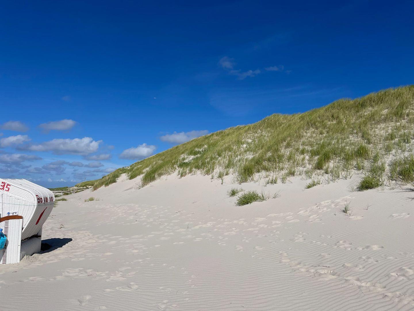 Hell, geräumig, mittendrin in Norddorf: Gerdina bietet ca. 240 m² Wohnfläche, 5 Schlafzimmer mit Hotel-Doppelbetten – jedes mit eigenem Bad – plus ein weiteres Bad neben der Küche. Draußen: zwei Terrassen, umzäunter Garten und eigene Strandkörbe. Dazu WLAN, Smart-TV/DVD, Waschmaschine & Trockner, 1 Parkplatz – alles fußläufig zu Bäcker & Supermarkt. Für bis zu 10 Personen.