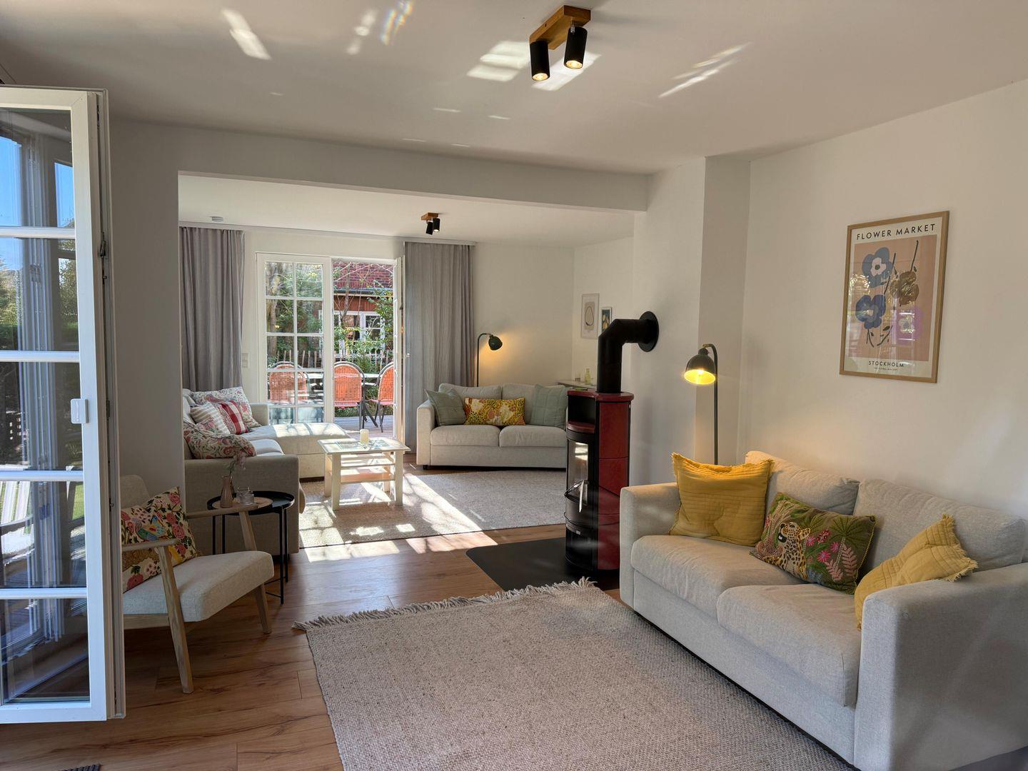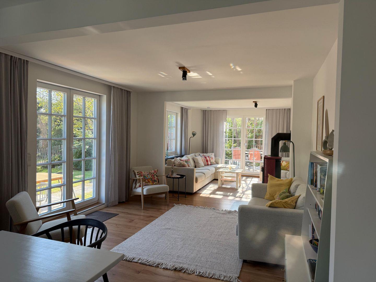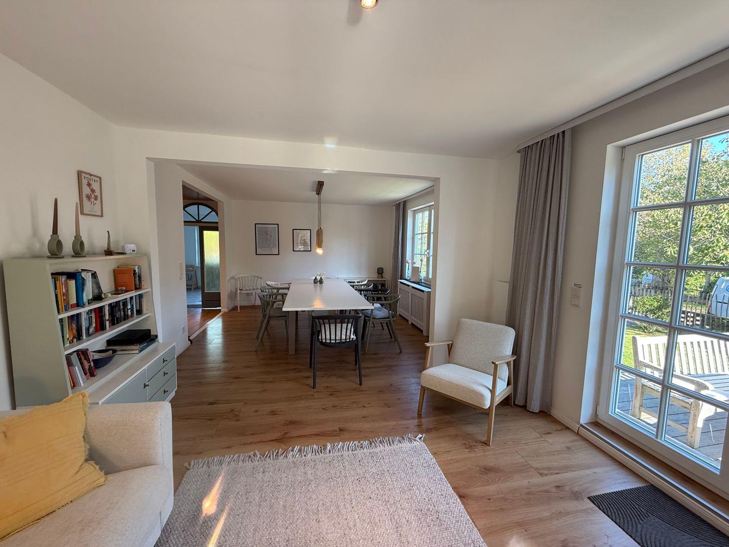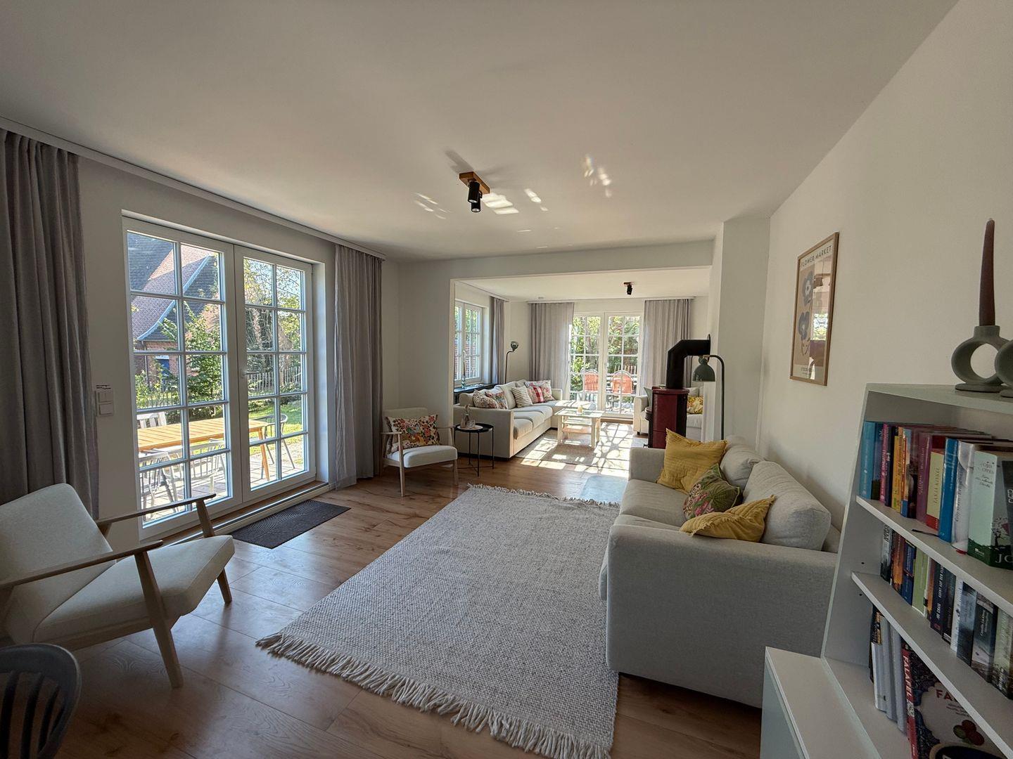 Willkommen in Gerdina – dem großzügigen Inselzuhause für alle, die gemeinsam reisen und doch ihren Rückzugsort schätzen. Auf ca. 240 m² verteilen sich 5 Schlafzimmer mit Hotel-Doppelbetten, jedes en-suite – das heißt: eigene Bäder für maximale Privatsphäre. Ergänzt wird das Ganze um ein weiteres Bad neben der Küche. Der offene Wohn-/Essbereich lädt zu langen Gesprächen ein, während draußen zwei Terrassen und ein umzäunter Garten mit Strandkörben Ihr privates Plätzchen in der Nordseeluft bereithalten. Praktisch für den Aufenthalt: WLAN, Smart-TV/DVD, Waschmaschine & Trockner und ein Parkplatz am Haus; Bäcker und Supermarkt liegen zu Fuß ums Eck. So wird’s für bis zu 10 Personen entspannt – vom Frühstück bis zum Sundowner im Strandkorb. Hunde sind ebenso willkommen. Das Haus ist rauchfrei.