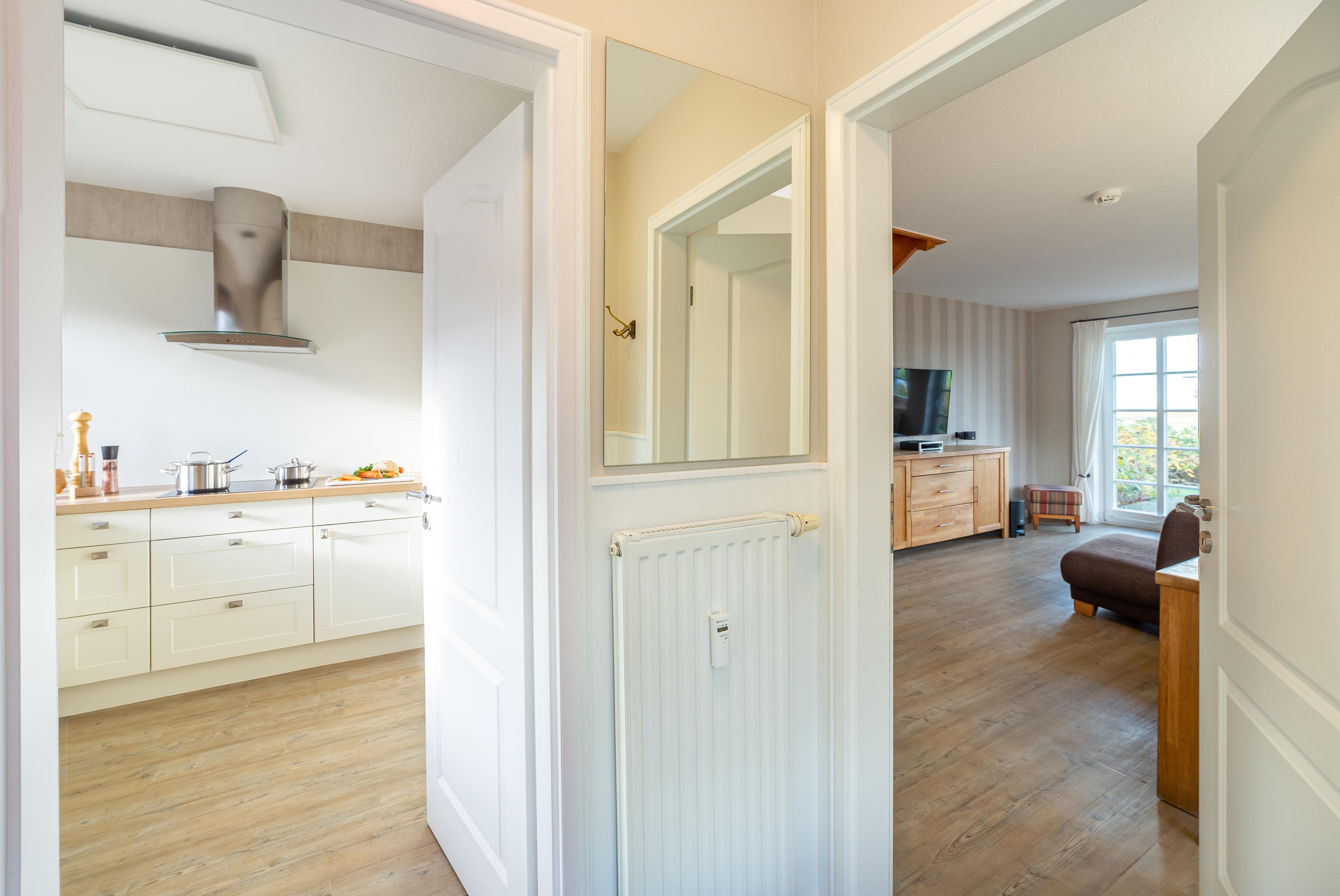 Drei Etagen mit zwei Schlafzimmern, zwei Bädern, einer separaten Küche, einem geräumigen Wohn- und Esszimmer und eine herrliche Terrasse mit Strandkorb erwarten Sie.