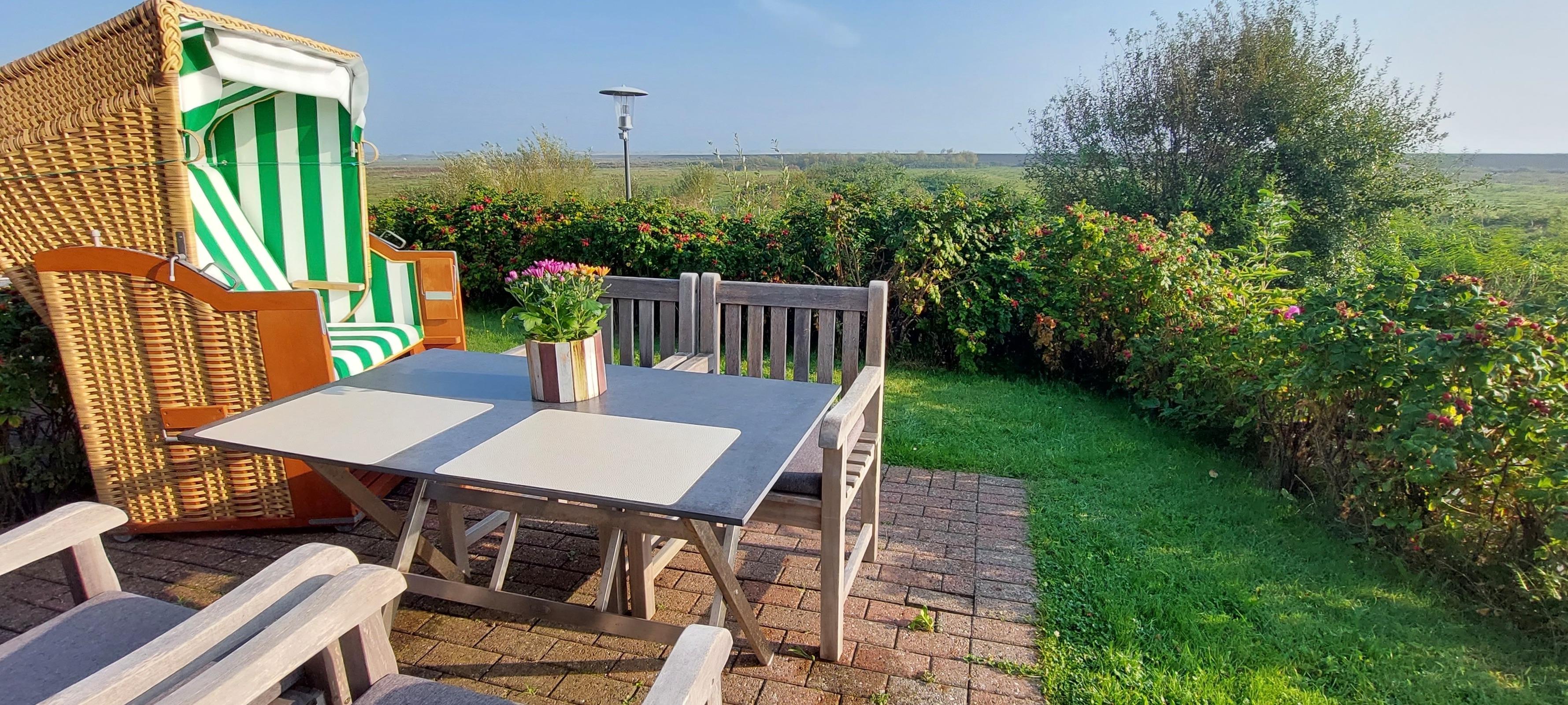Ob als Familie, alleine oder zu zweit - die Ferienwohnung Lachmöwe bietet allen Urlaubern das herrlichste Zuhause auf Zeit an. Aus der gesamten Wohnung heraus genießen Sie einmalig schönen Meerblick über die Norddorfer Salzwiesen, hinüber zur Nachbarinsel Föhr und Sylt.
