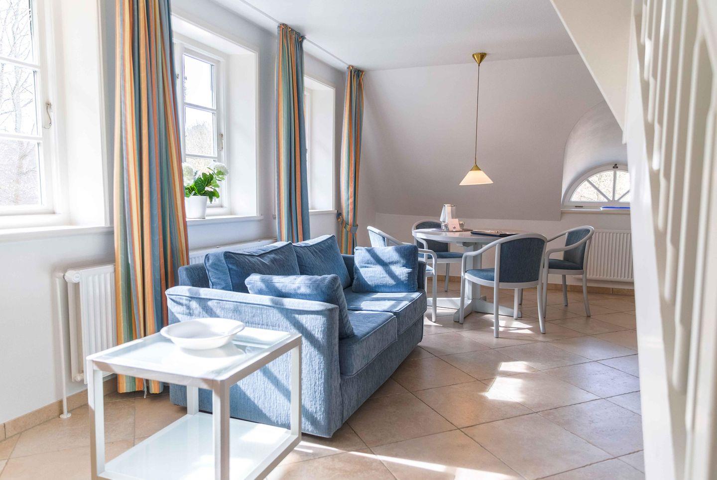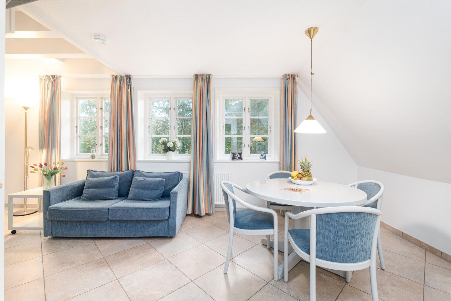 Obergeschosswohnung über 2 Ebenen, bis 4 Personen, mit Strandkorb im Garten