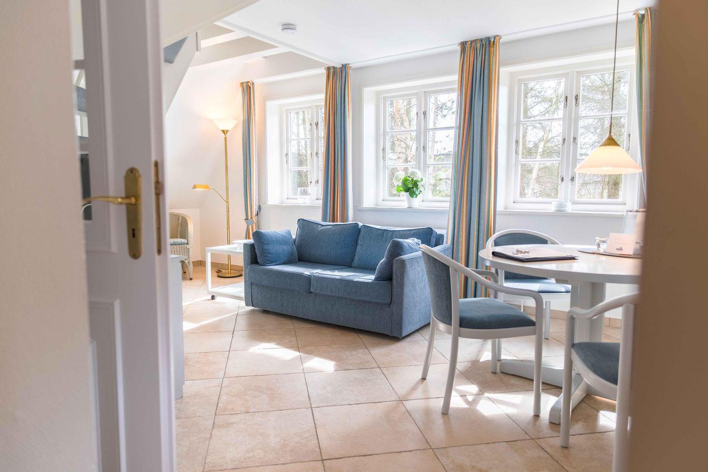 Obergeschoss über 2 Ebenen, für bis zu 4 Personen – ca. 60 qm mit einem Strandkorb im Garten (von Ostern bis Oktober),