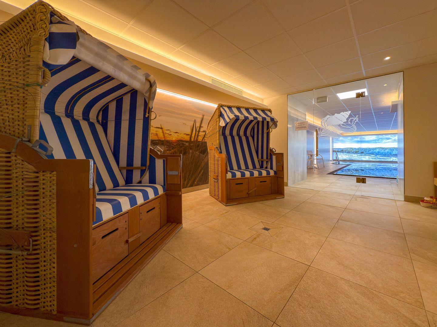 Obergeschoss über 2 Ebenen im Maisonette-Stil – bis zu 3 Personen, ca. 50 qm mit einem Strandkorb im Garten (von Ostern bis Oktober),