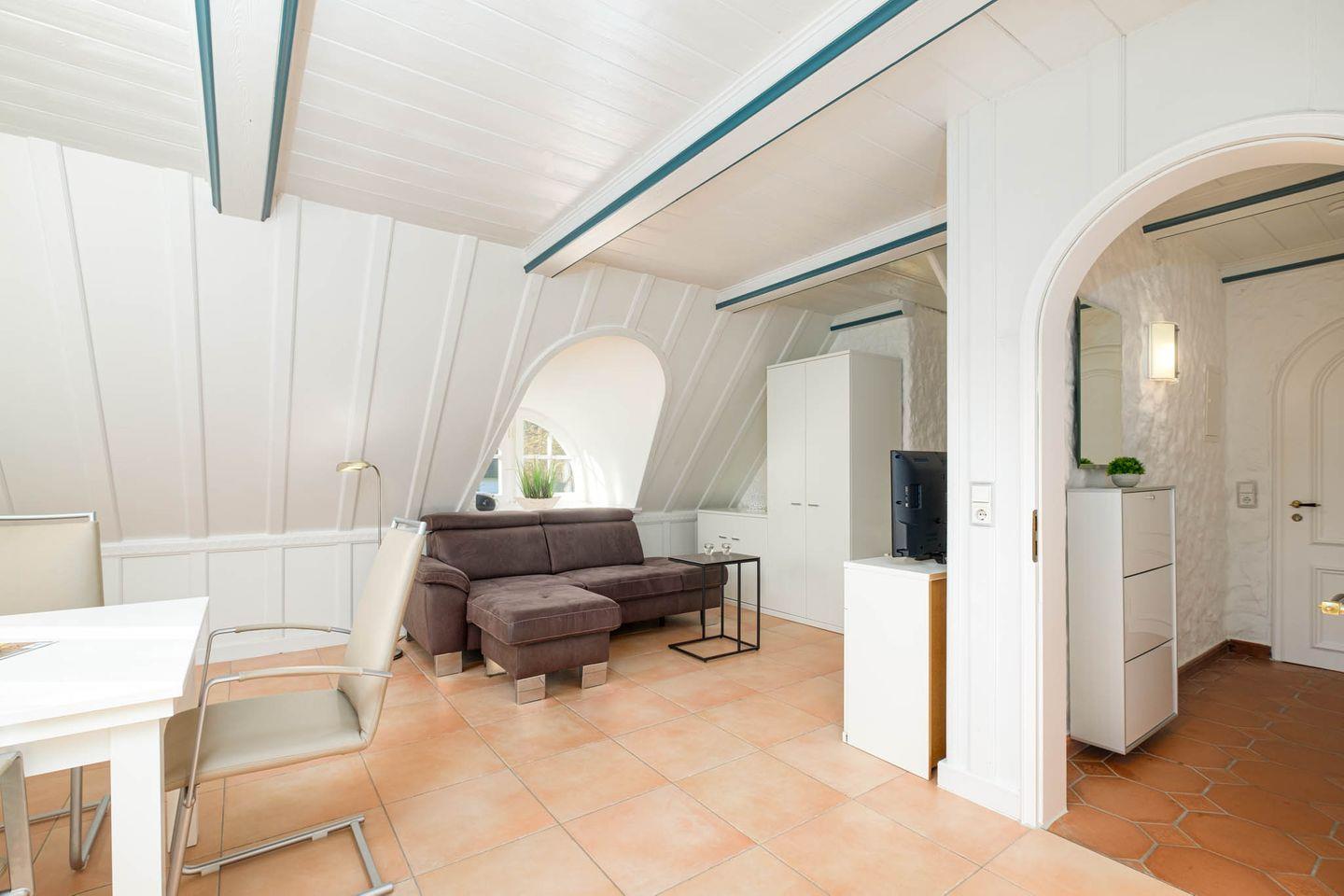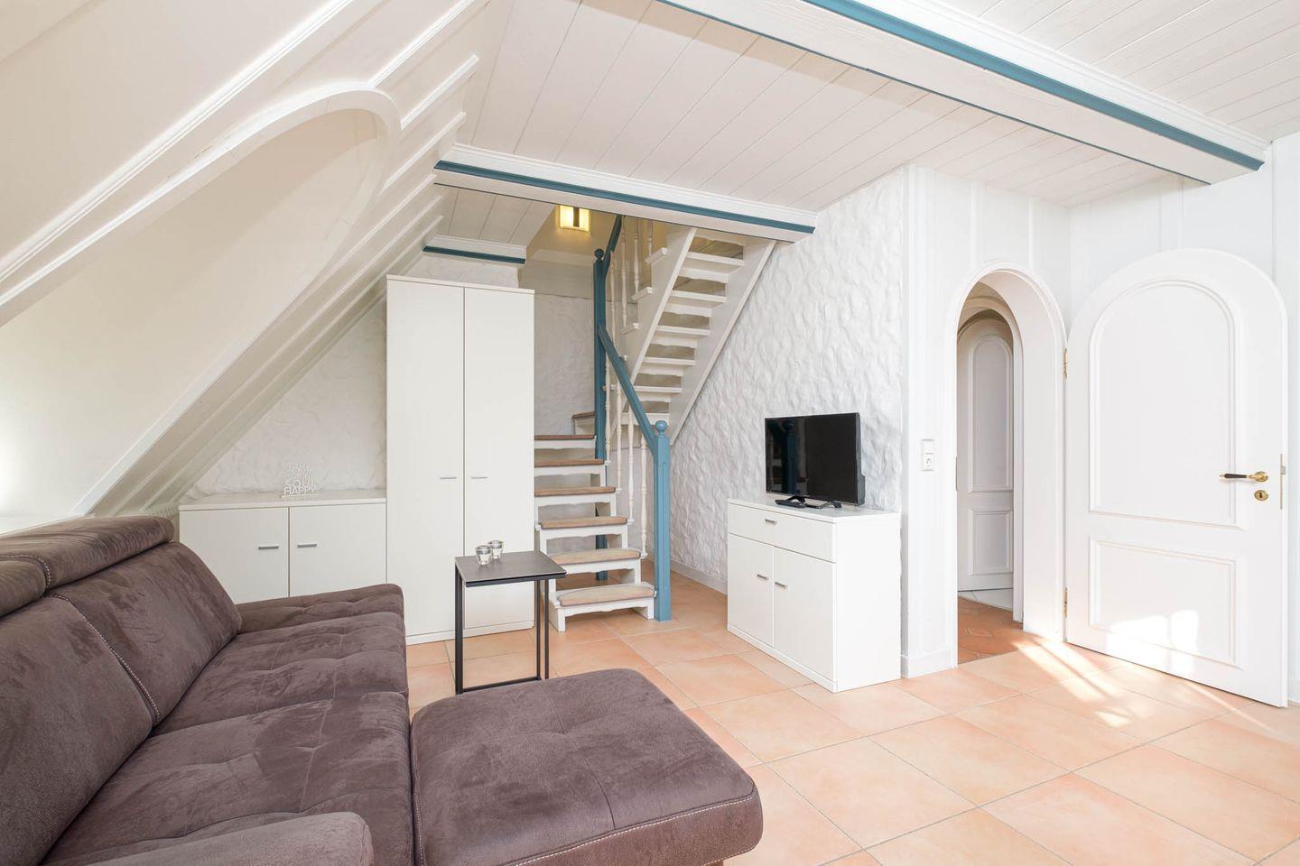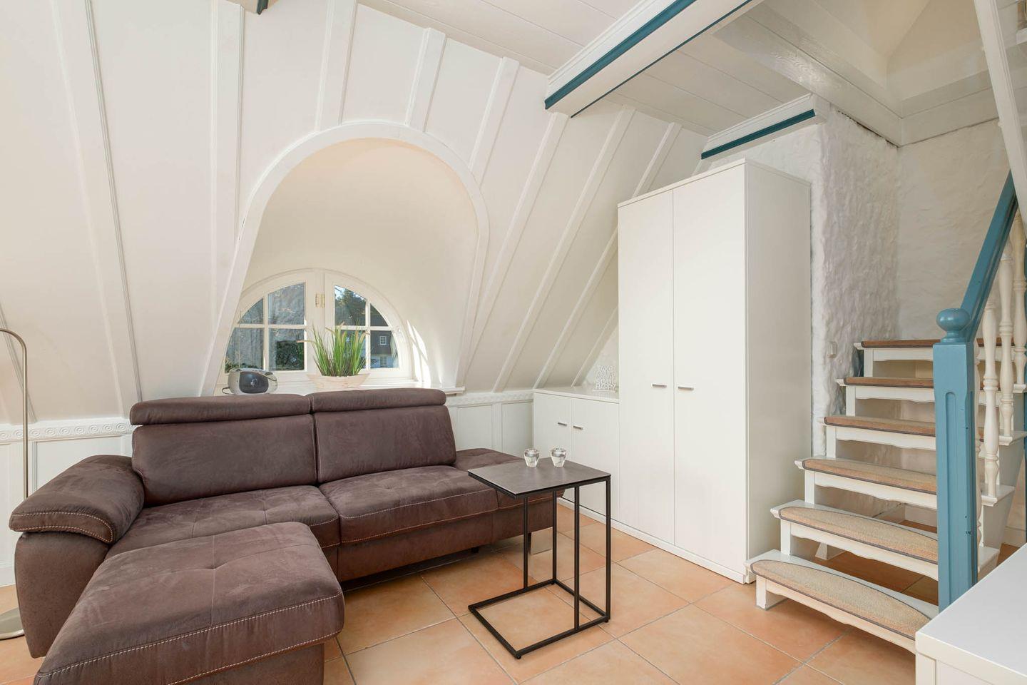 Die helle und geschmackvoll eingerichtete Obergeschosswohnung über zwei Ebenen bietet auf charmante Weise alles, was man für einen entspannten Urlaub zu zweit braucht.