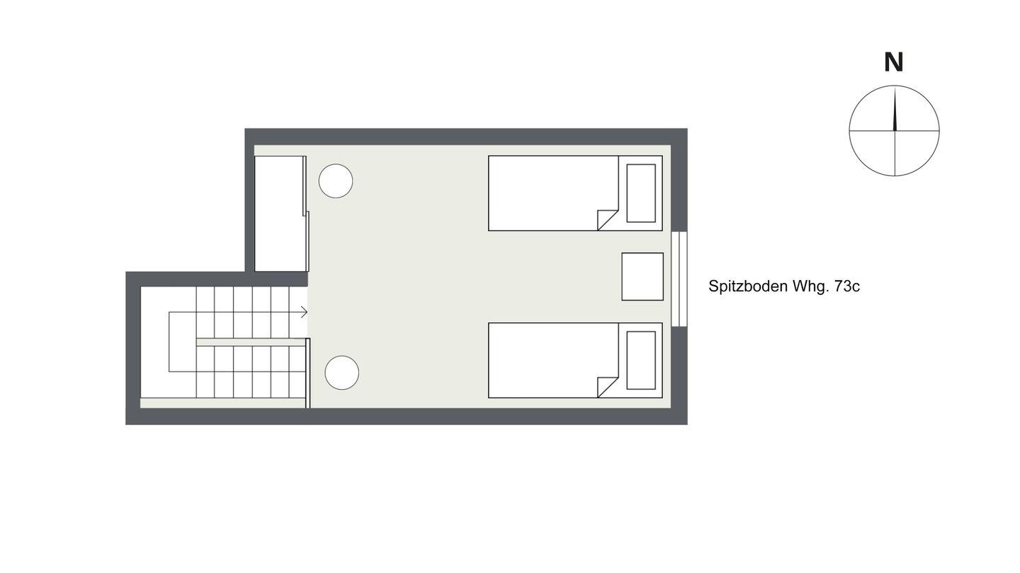 Obergeschoss über 2 Ebenen – ca. 51 qm, mit einer Terrasse, für 2 Personen.