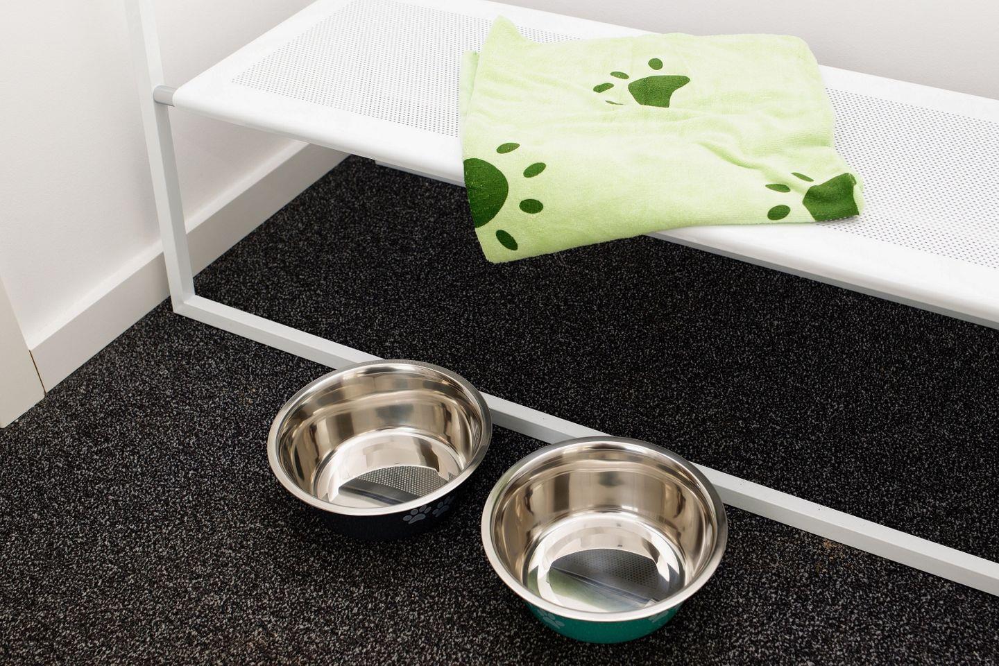 Hunde gegen Aufpreis erlaubt. Für Ihren vierbeinigen Freund stehen Fressnäpfe und ein Handtuch für die nassen Pfoten bereit.