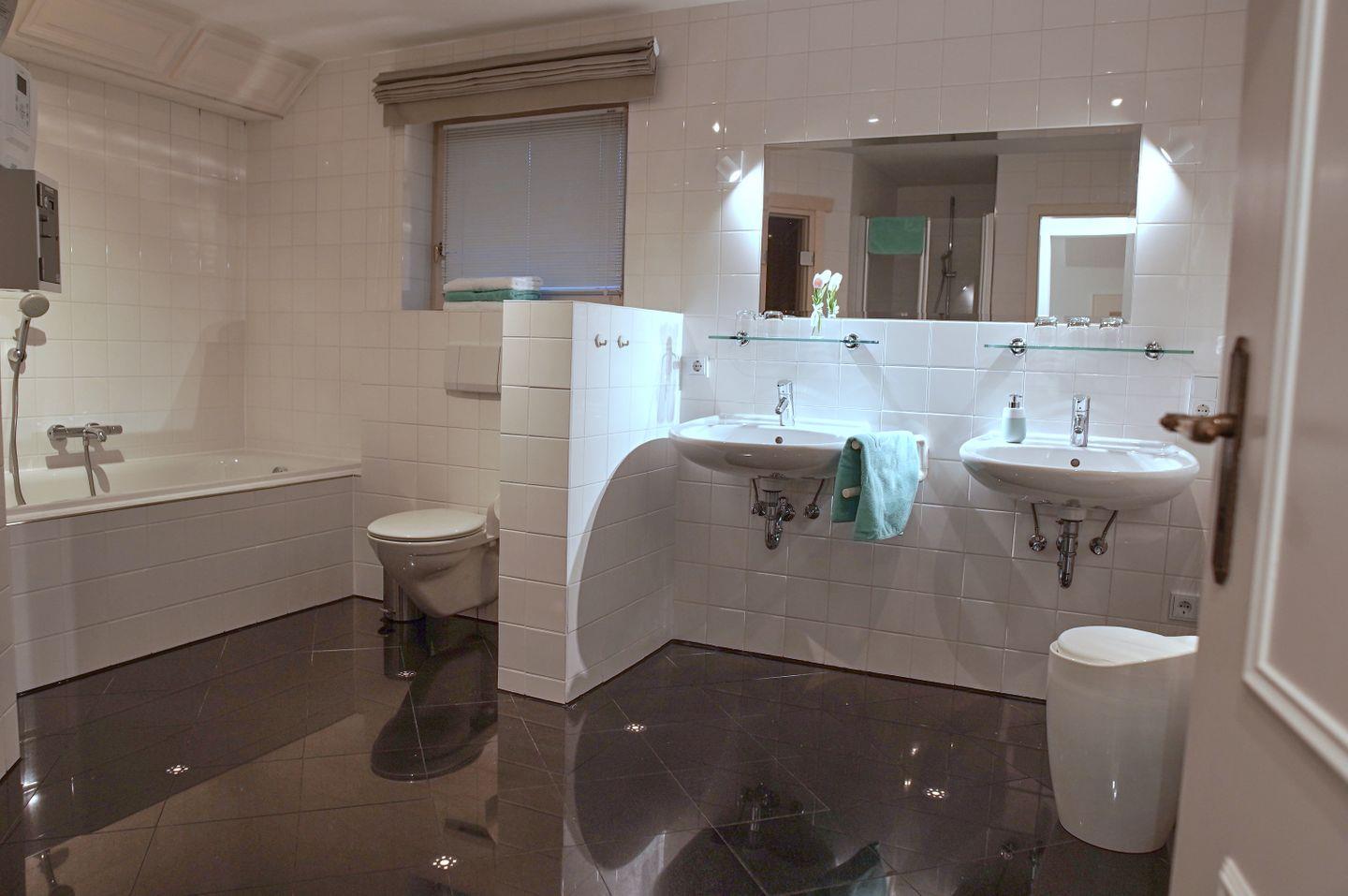 Souterrain: 2 Doppelschlafzimmer, 1 Einzelschlafzimmer, großes Badezimmer mit Doppelwaschbecken, Badewanne, Dusche und WC sowie eigene Sauna.