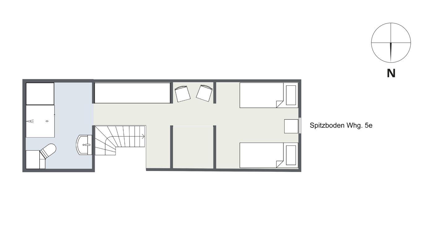 ein weiteres Schlafzimmer fu¨r 2 Personen mit Einzelbetten und 1 Duschbad/ WC im ausgebauten Dachgeschoss