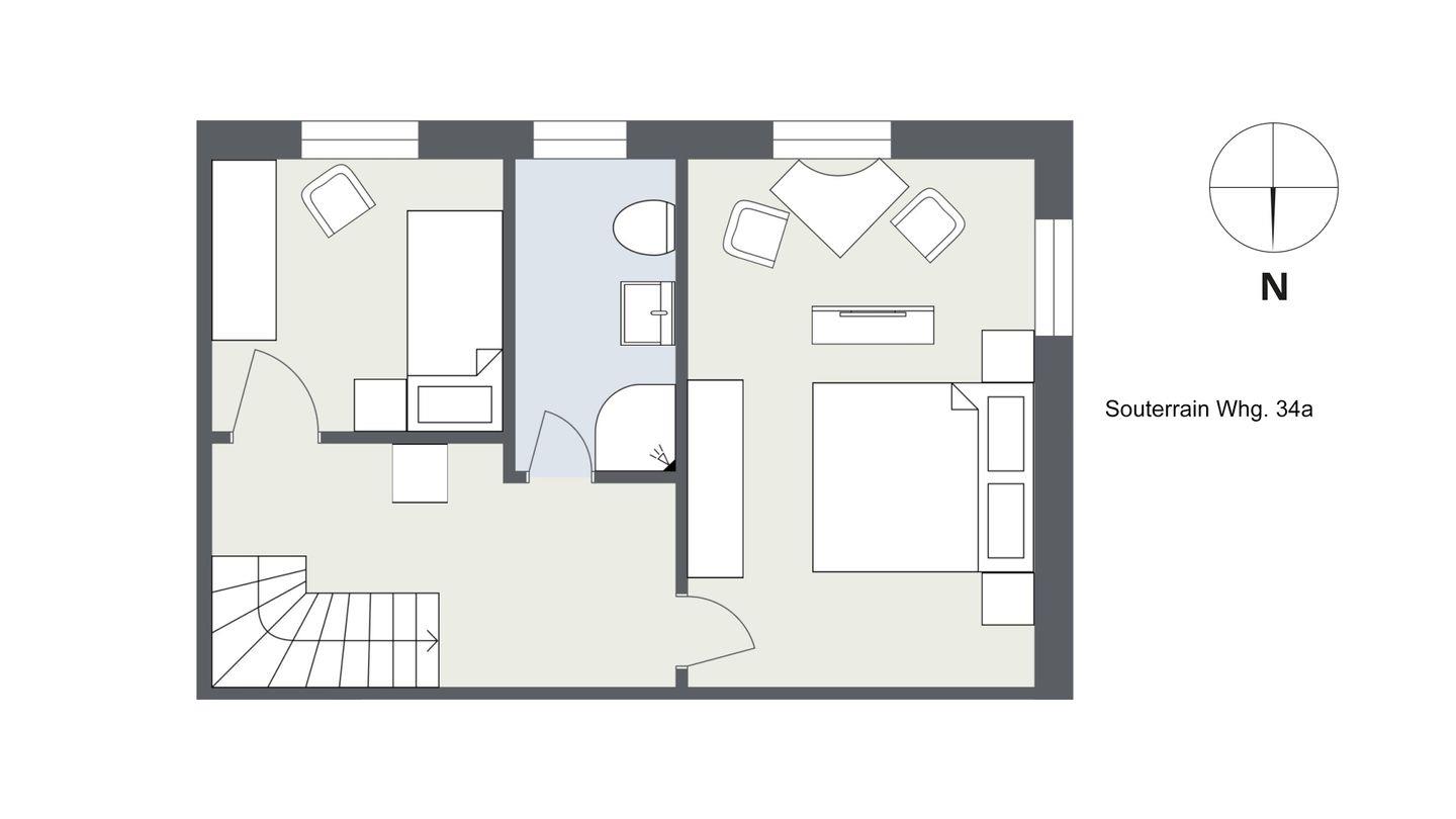 Souterrain: 1 Doppelschlafzimmer und 1 Einzelschlafzimmer sowie 1 Duschbad/WC.