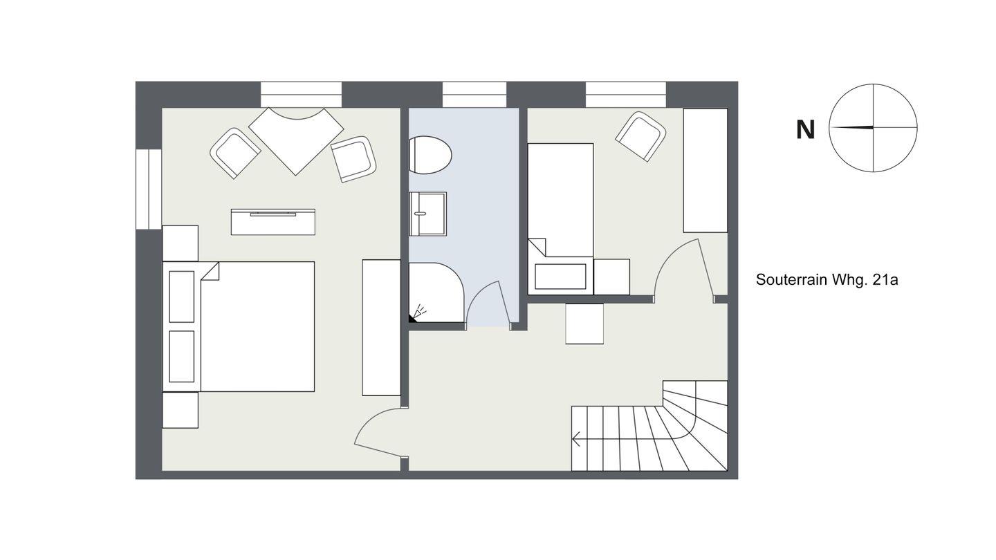 Souterrain: 1 Doppelschlafzimmer und 1 Einzelschlafzimmer sowie 1 Duschbad/WC.