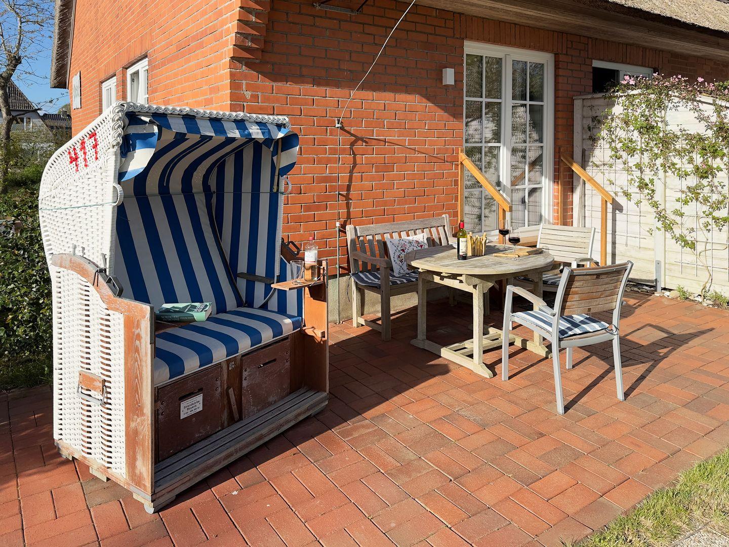 NEU: zusätzlich jetzt auch eigener kostenloser Strandkorb der Strandkorbvermietung Boyens am Norddorfer Badestrand mit beliebiger Standortwahl an den Dünen oder am Wasser (April - Oktober).