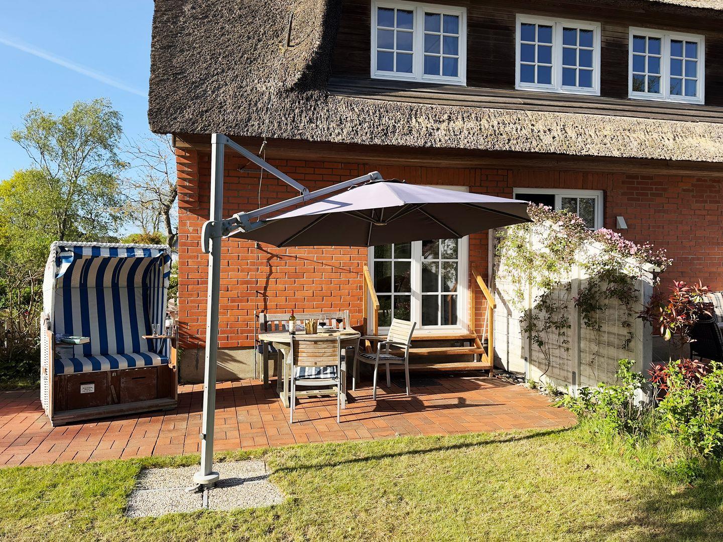 Neben der Ferienwohnung *Reethuk* befindet sich die Ferienwohnug *Reetblick* für 4 Personen. Zusammen gebucht ergibt sich so eine Kombinationsmöglichkeit für bis zu 7 Personen. Die Terrassen können dann gemeinschaftlich genutzt werden.