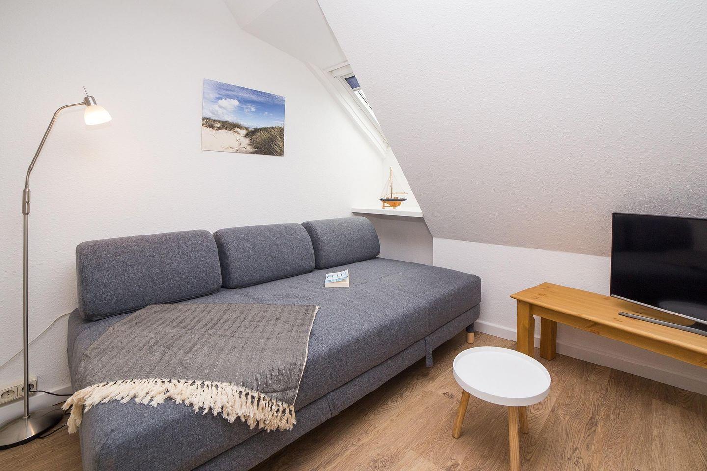 Die Wohnung liegt wunderbar ruhig. Dennoch sind Sie in nur wenigen Minuten zu Fuß im Zentrum von Norddorf.