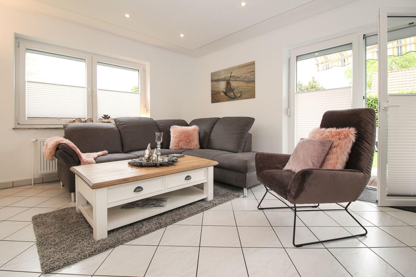 Das schmucke Ferienhaus wurde im Jahr 2019 vollständig modernisiert und renoviert. Das hochwertige L-Sofa lädt ein zu gemütliches Abendstunden ein. Der elektrische Kamin tut sein Übriges. Der große Essbereich ist ideal für die ganze Familie. Die separate Küche mit hochwertiger Küchenzeile bietet alles, was man im Urlaub benötigt. Der angrenzende Abstellraum bietet sehr viel Stauraum sowie einen separaten Gefrierschrank.
