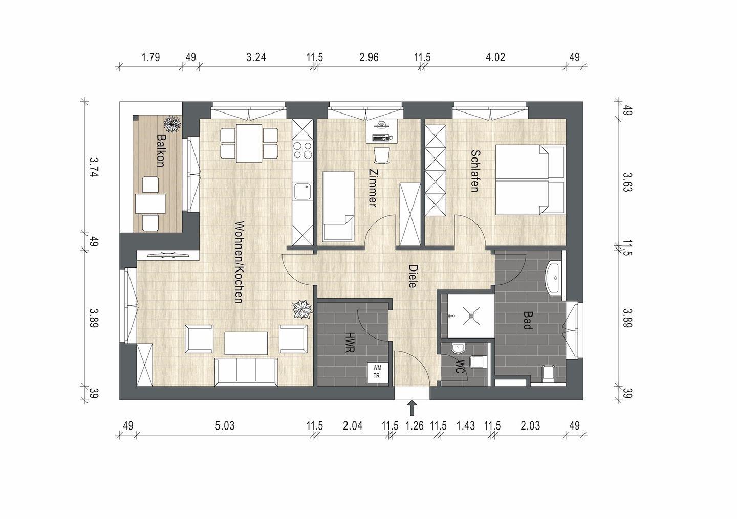 FeWo Achtert Diek, 85 qm, 2 Schlafzimmer, 1 Schlafsofa, bis zu 6 Personen, Waschmaschine