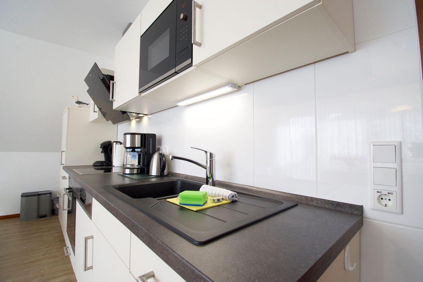 Vollständig ausgestattete Küche mit Wasch- und Spülmaschine: Die moderne Küche verfügt über eine Spülmaschine, die den Abwasch für Sie übernimmt, sowie eine Waschmaschine, die Ihnen während Ihres Aufenthalts zur Verfügung steht – praktisch für längere Aufenthalte oder Familien mit kleinen Kindern.