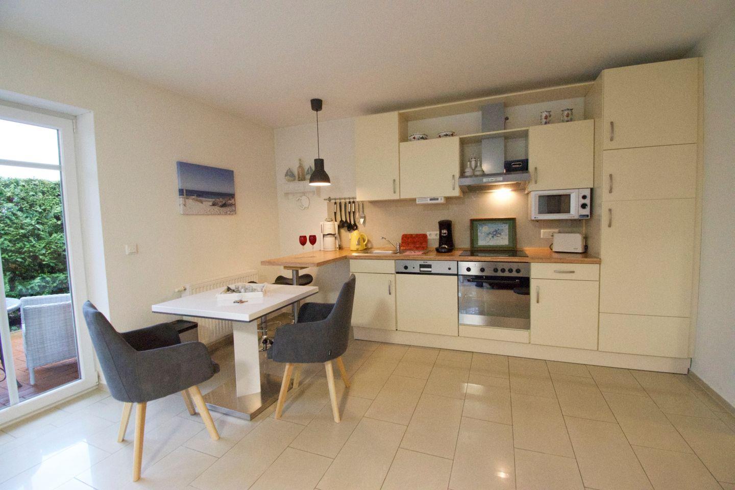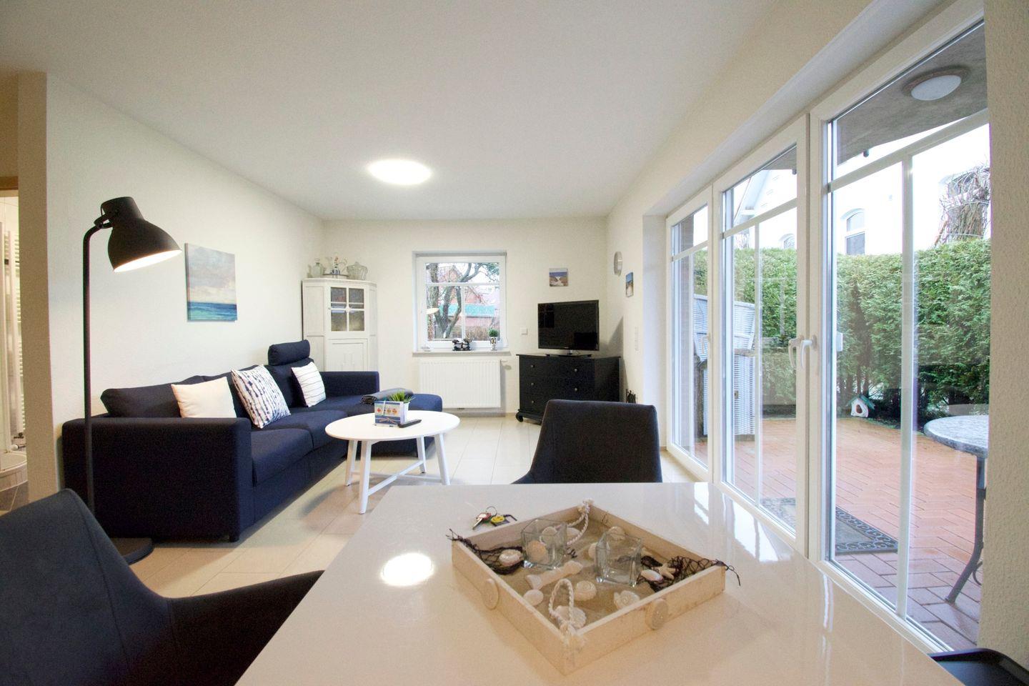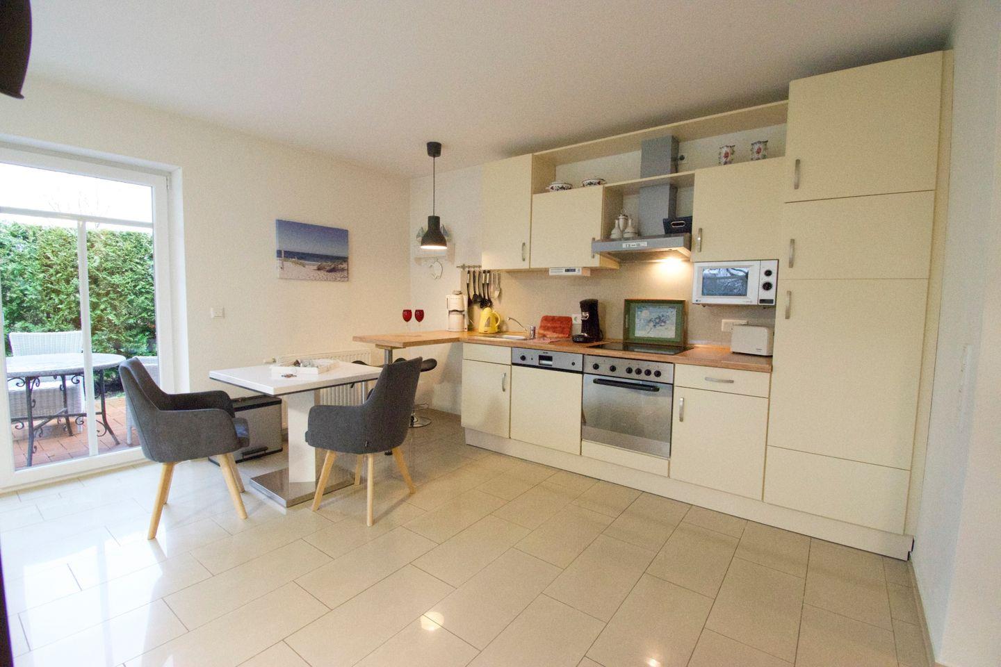 Die 64 m² große Unterkunft Ebbe in Norden-Norddeich bietet modernen Komfort auf Parterre mit Schlafzimmer, offenem Wohn- und Essbereich, voll ausgestatteter Küche und Terrasse mit Gartenblick. WLAN, Fußbodenheizung, Waschmaschine sowie ein eigener Parkplatz sind vorhanden. Einkaufsmöglichkeiten, Restaurants, der Strand und das Meer sind fußläufig erreichbar. Kinder sind willkommen, Haustiere und Jugendgruppen nicht erlaubt.