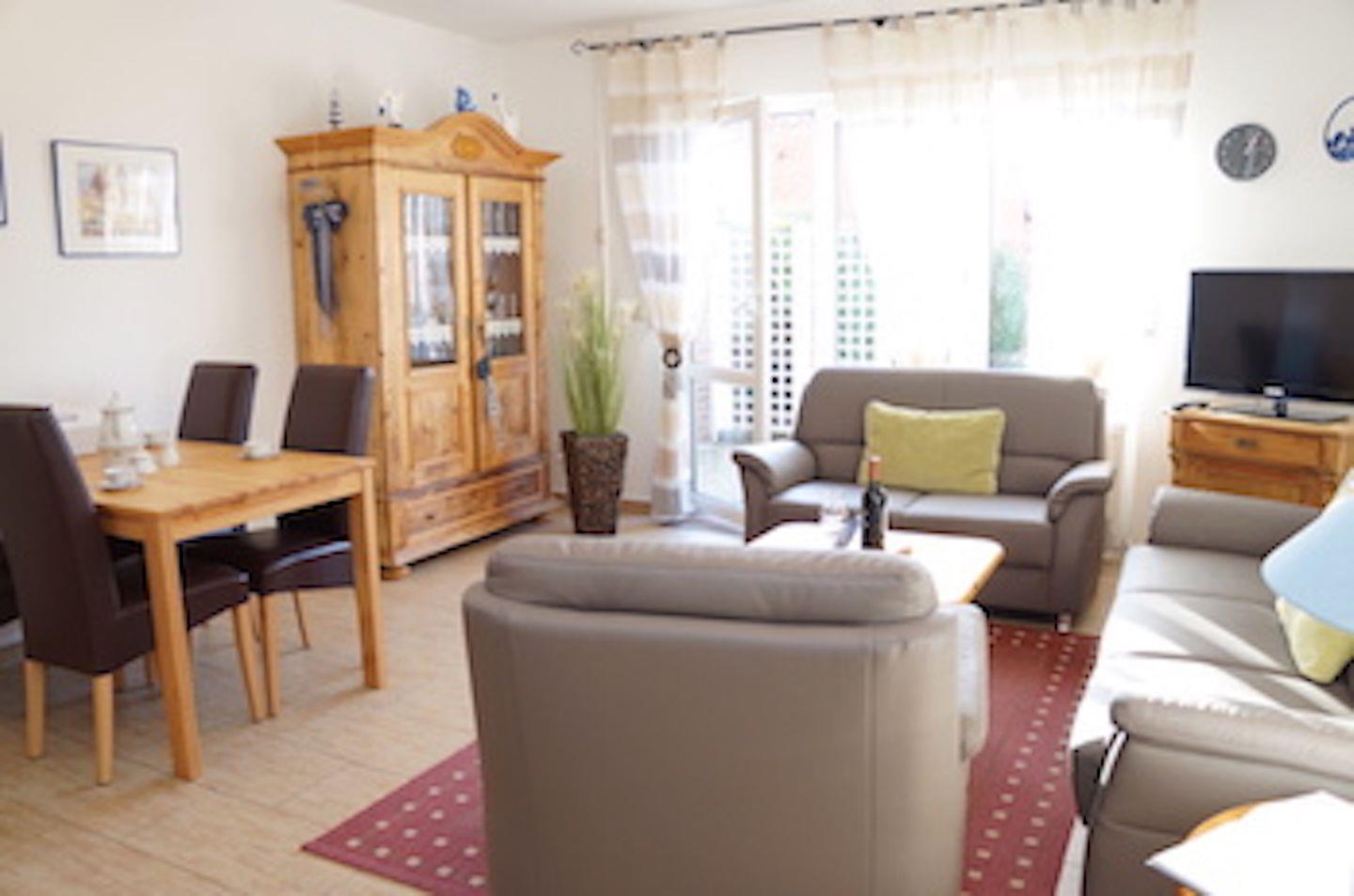 76 qm, 2 Schlafzimmer, Waschmaschine, Trockner, Gartennutzung, 150 Meter vom Deich entfernt, Haustiere erlaubt