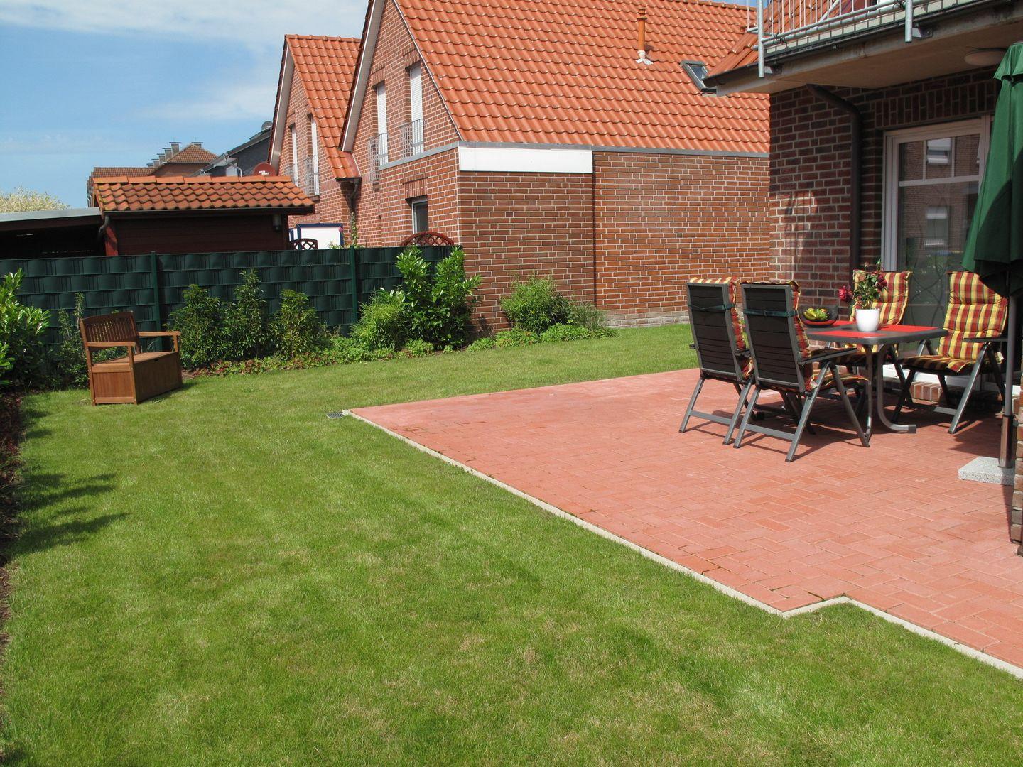 Ein weiteres Highlight der Wohnung ist die große Terrasse mit schönem Garten in Südwestlage, die zum entspannten Verweilen im Freien einlädt. Hier können Sie die frische Nordseeluft genießen oder es sich auf einer der Sonnenliegen bequem machen. Die Gartenmöbel sind ideal, um Mahlzeiten im Freien zu servieren. Ein Privatparkplatz direkt am Haus steht Ihnen ebenfalls zur Verfügung wie auch ein separater Fahrradraum mit eBike-Ladestation.