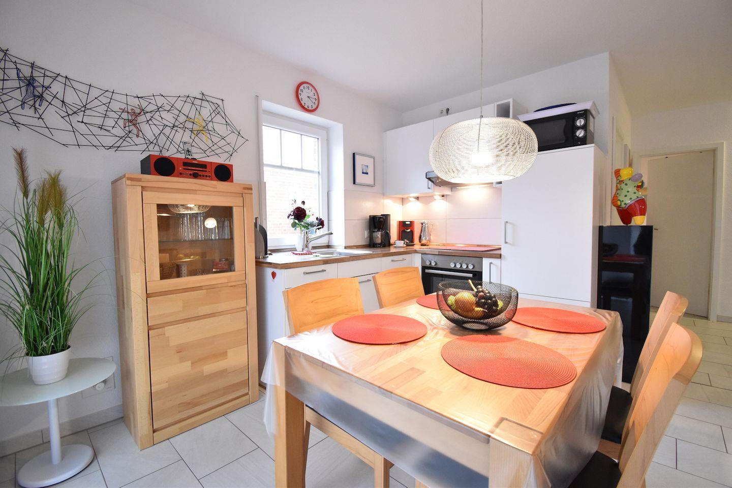 Die Wohnung befindet sich in zentraler, ruhiger Lage (Anliegerstraße) mitten im Ferienort. Restaurants, Cafés, Eisdielen, Bäckereien und eine Vielzahl von Geschäften sind fußläufig in wenigen Minuten erreichbar, ebenso Attraktionen wie das Ocean-Wave-Erlebnisbad mit Saunadeck, die Seehund-Aufzuchtstation, Abenteuergolf, Bowling und weitere. Zusätzlich zum erholsamen Strandurlaub bietet die Region Möglichkeiten für Schiffsausflüge zu den Inseln, sportliche Aktivitäten wie Radtouren, Reiten, Surfen, Golfen. Für kulturelle Abwechslung sorgen zahlreiche örtliche Veranstaltungen, so z. B. Konzerte, Führungen, Vorträge; mehrere sehenswerte Museen der näheren Umgebung laden zu einem Besuch ein.