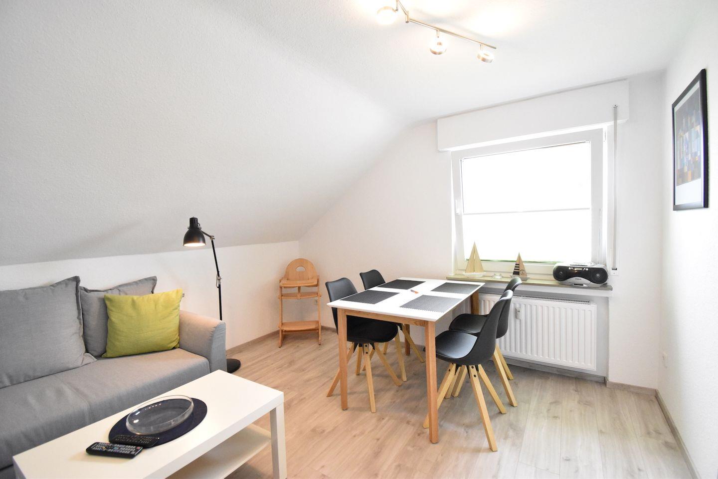 Sie finden ebenfalls zwei klappbare Gartenstühle sowie einen kleinen, klappbaren Tisch, die Sie auf der kleinen Terrasse vor der Haustür im Garten am Haus verwenden können.?Im separaten Abstellraum im Erdgeschoss stehen unseren Gästen sowohl ein Damen- als auch ein Herrenrad zur kostenlosen Verfügung.?Der zur Wohnung gehörende Parkplatz befindet sich direkt vor dem Haus.