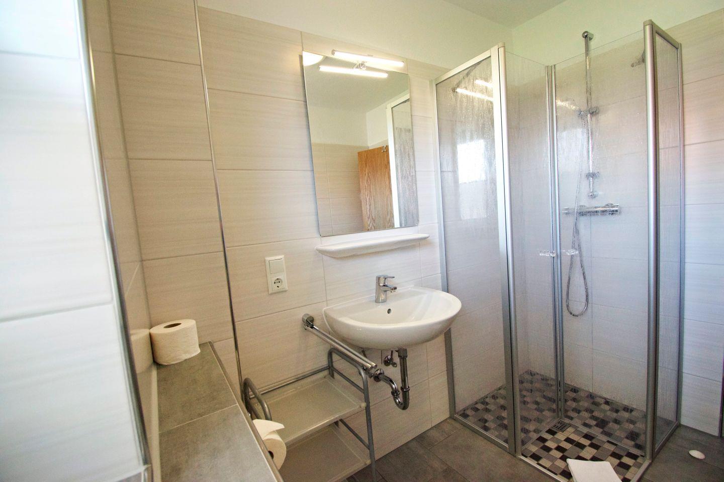 Sie wohnen in einer 55 m² großen, 3-Zimmer-Wohnung, mit 2 getrennten Schlafzimmern im Erdgeschoss. Küche und Bad verfügen jeweils über Tageslicht. Die gemütliche Wohn-Küche hat eine Küchenzeile mit großem Kühlschrank, Cerankochfeld, Backofen und Mikrowelle, und ist voll eingerichtet.