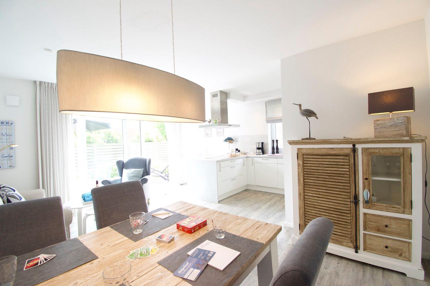 Der sonnendurchflutete Wohn- und Essbereich mit Terrassenzugang lädt zum Entspannen bei einer leckeren Tasse Tee ein. Die offene, voll ausgestattete Küche lässt keine Wünsche offen.