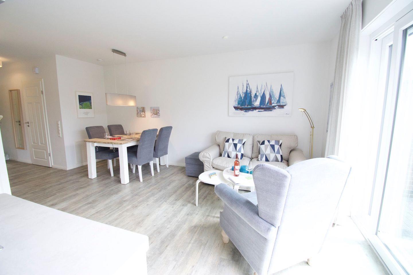 Fühlen Sie sich wohl im lichtdurchfluteten gemütlichen Wohn/ Esszimmer mit Blick auf die Terrasse oder nutzen Sie das separate Wohn-Schlafzimmer auf dem bequemen Schlafsofa oder den Sesseln vor dem TV.