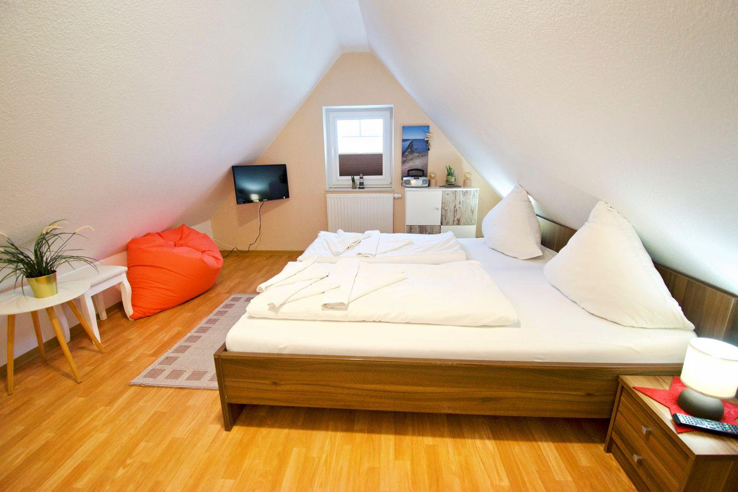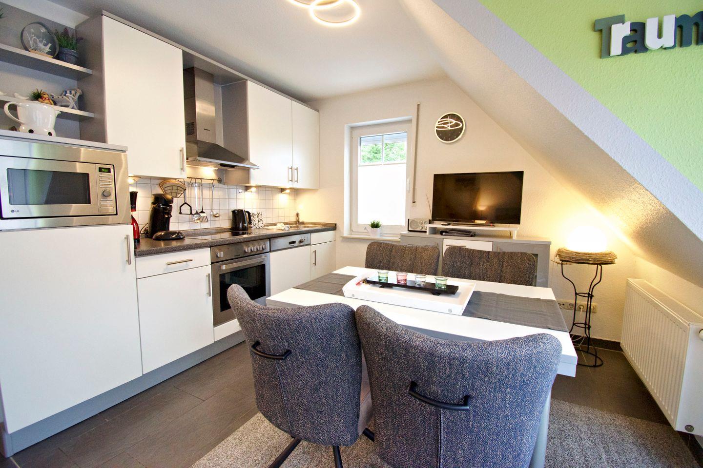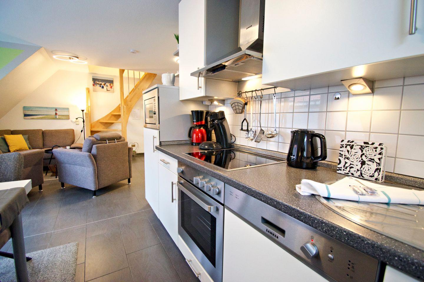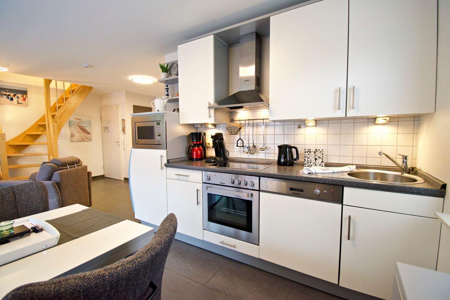 Die Ferienwohnung überzeugt mit einem hellen, offenen Wohn- und Essbereich, einer voll ausgestatteten Küche, zwei gemütlichen Schlafzimmern sowie einem modernen Badezimmer. Ob als Familie, Paar oder Alleinreisende – hier finden Sie alles, was Sie für einen entspannten Urlaub an der Nordsee benötigen.