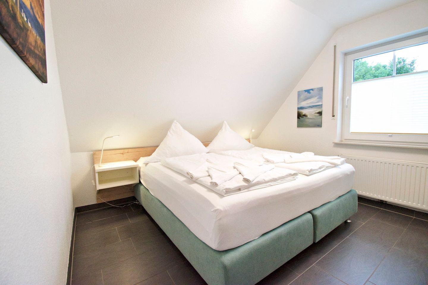 Zwei Schlafzimmer mit hochwertigen Betten und Fliesenboden
