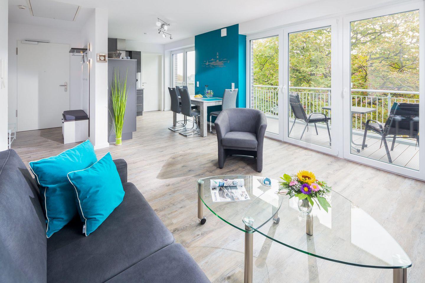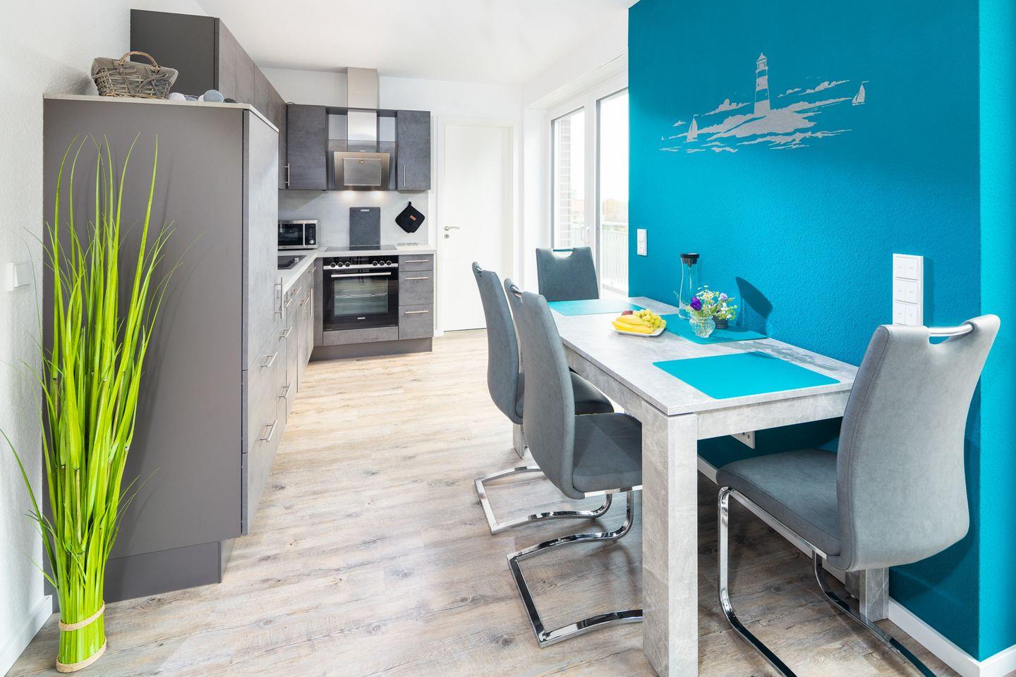 Im Zentrum von Norddeich, nur wenige Minuten vom Wattenmeer und Strand entfernt, befindet sich die lichtdurchflutete 2-Zimmer-Ferienwohnung mit 65 m² im Dachgeschoss. In moderner Architektur mit zukunftsorientierter Ausstattung in Kombination mit einer exklusiven Wohnanlage befindet sich die geschmackvoll eingerichtete Wohnung, die Sie bequem über einen Fahrstuhl erreichen. Die Wohnung überzeugt durch qualitativ hochwertige Materialien und dem Inventar, das zu einem unvergesslichen Urlaubserlebnis beiträgt. Zur Ausstattung der Ferienwohnung gehören ein modernes Schlafzimmer, ein großzügiges Badezimmer und ein gemütliches Wohnzimmer mit offener und moderner Wohnküche, die optimale Bedingungen für einen Traumurlaub bieten.