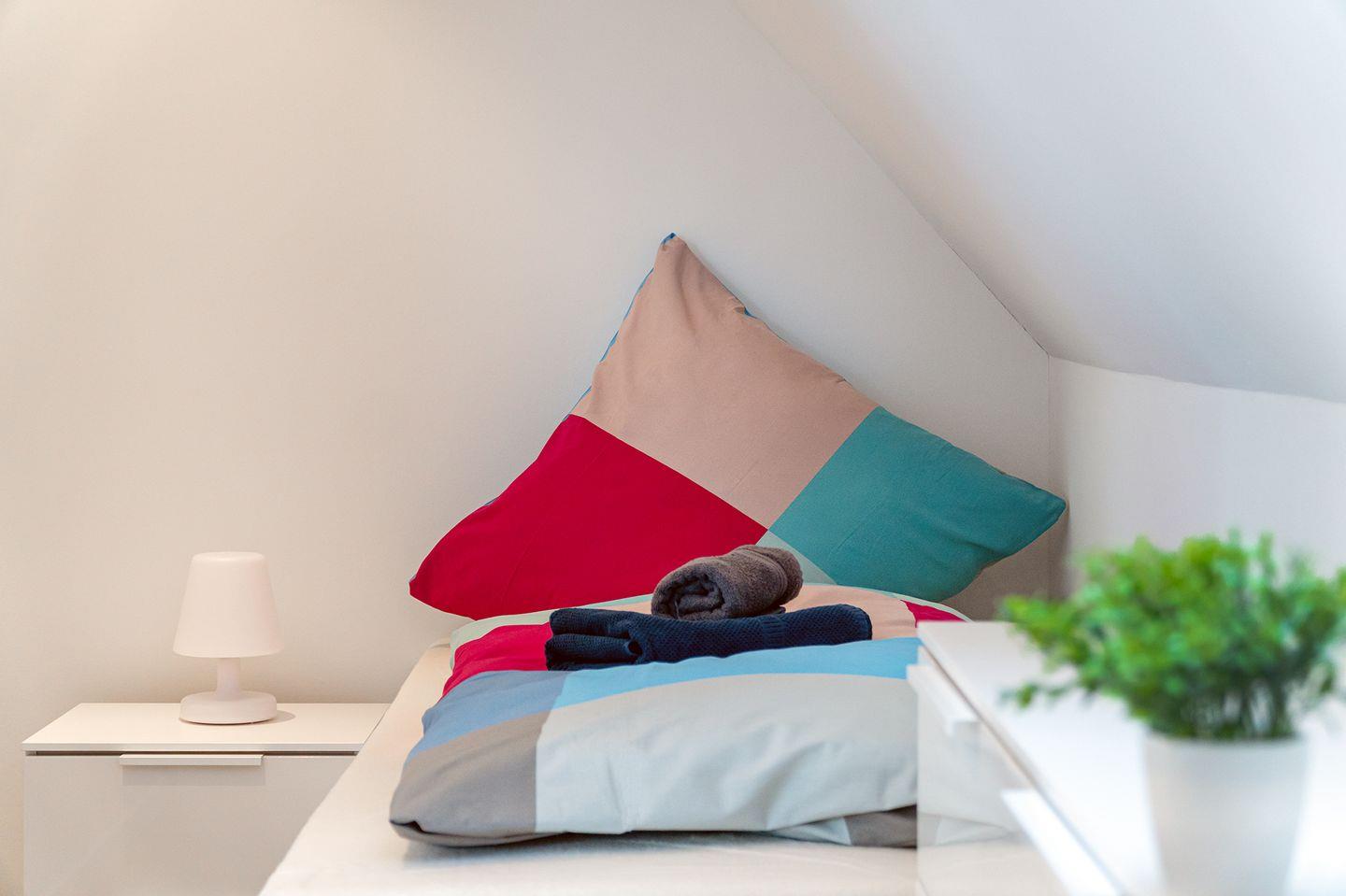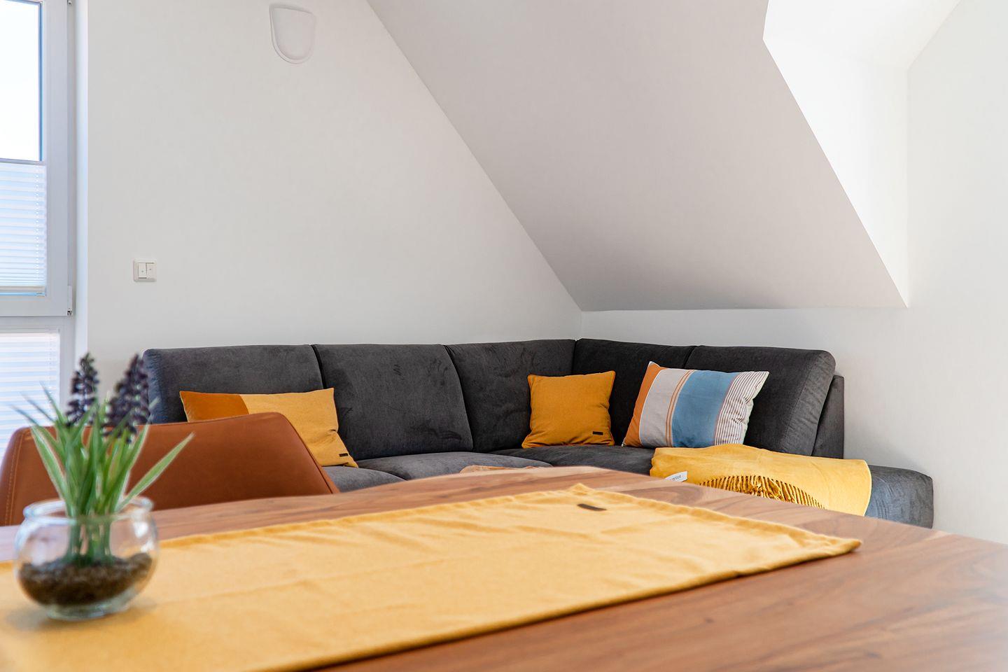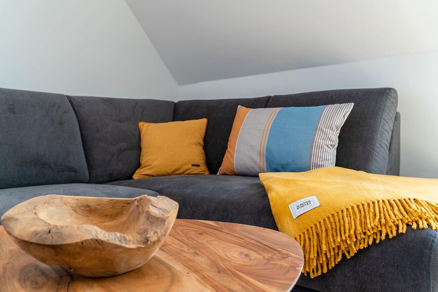 Die Maisonette-Ferienwohnung mit 57qm befindet sich in einem neu erbauten Haus unweit des Strandes. Nur wenige Meter müssen zurückgelegt werden bis zum Deich und der Strandpromenade. Hier finden bis zu vier Personen und ein Kleinkind (unter 2 Jahre) Platz. Der großzügige Wohn- und Essbereich ist strahlend hell und mit allen Annehmlichkeiten wie Couchgarnitur, Esstisch mit vier Stühlen, großes Smart-TV und WLAN ausgestattet. Die Küchenzeile verfügt über eine Spülmaschine und eine Mikrowelle mit Backfunktion.