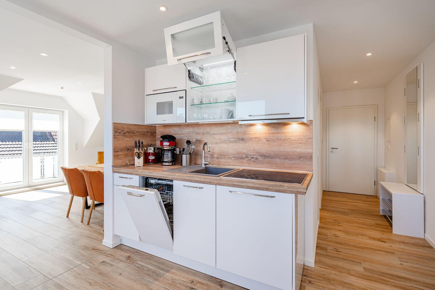 Bitte beachten Sie: Die Wohnung verfügt über keinen Backofen, es steht eine Mikrowelle mit Backfunktion zur Verfügung.