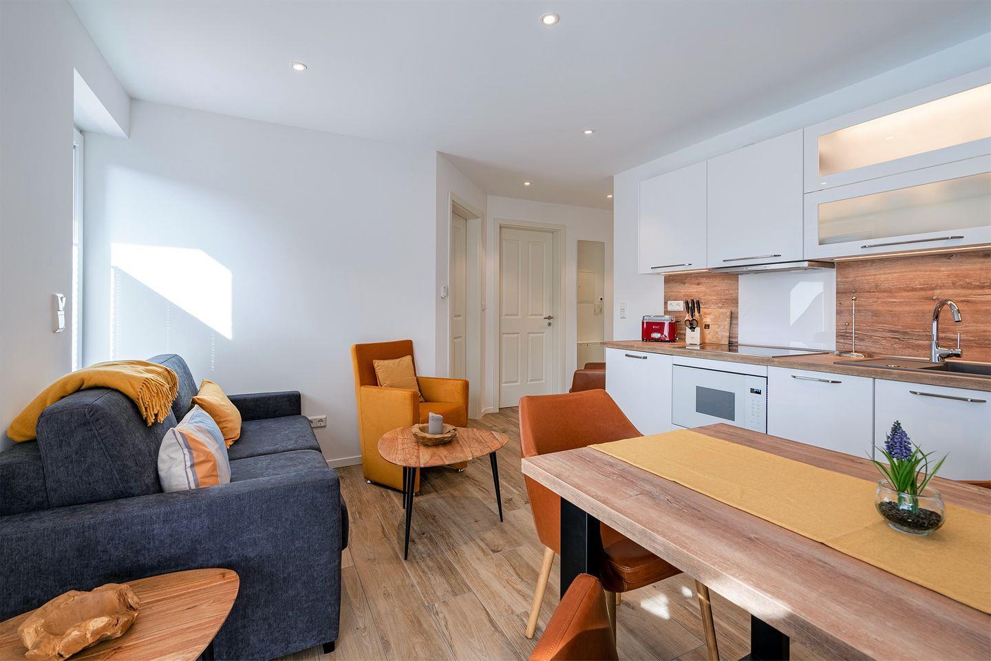 Die Erdgeschosswohnung mit 38qm befindet sich in einer ruhigen Straße, wenige Meter vom Strand entfernt in einem neu erbauten Haus, der Residenz Deichnah. Das Meer sowie diverse Restaurants befinden sich in fußläufiger Entfernung. Sie bietet Platz für bis zu vier Personen und verfügt über ein Doppelbett und ein Hochbett.