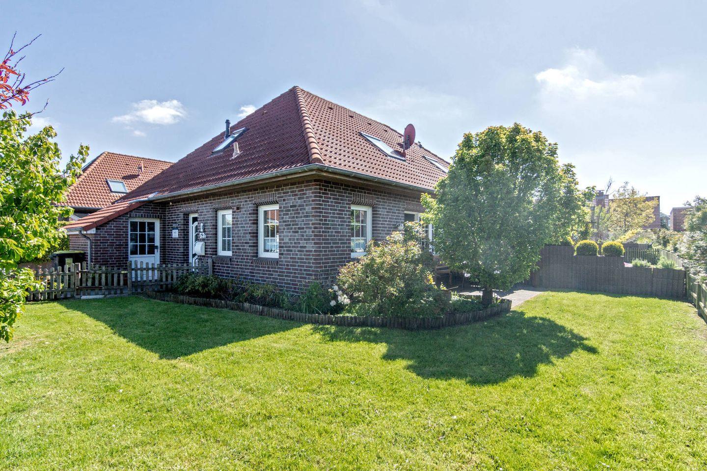 Der Doppelbungalow in Norddeich hat eine Fläche von etwa 80 Quadratmetern und bietet über zwei Etagen genügend Platz für bis zu fünf Personen sowie ein Kind. Es ist gestattet, einen kleinen Hund mitzunehmen. Es gibt einen Abstellplatz für Fahrräder und drei Autoeinstellplätze. Dieses schöne Nichtraucher-Haus liegt etwa 10-15 Gehminuten vom Strand, während das Erlebnisbad Ocean Wave und der Ortskern nur etwa 5 Gehminuten entfernt sind.