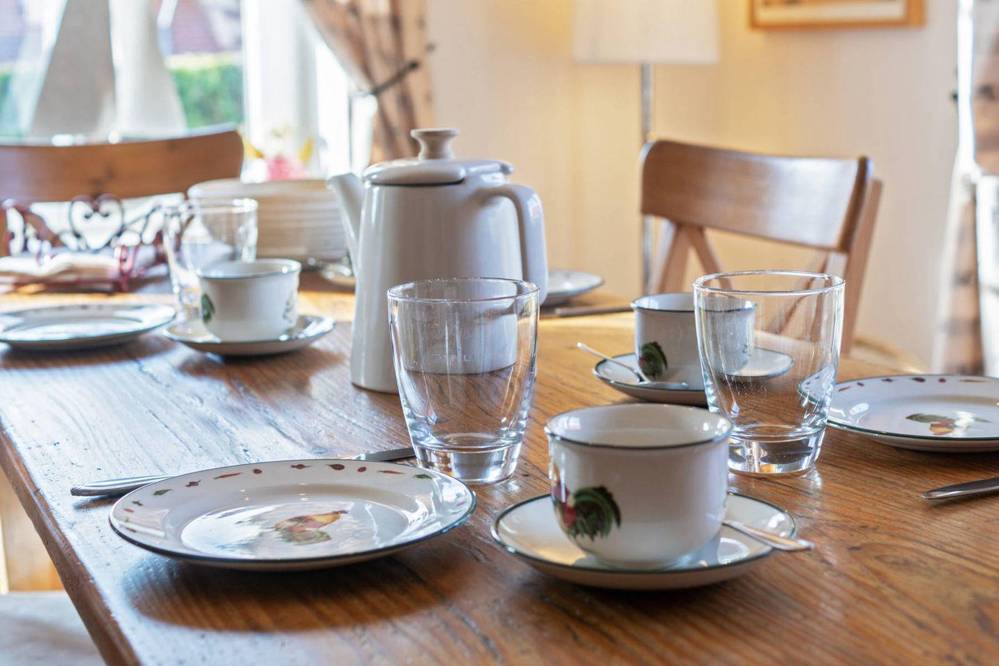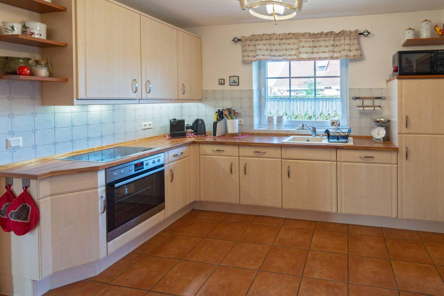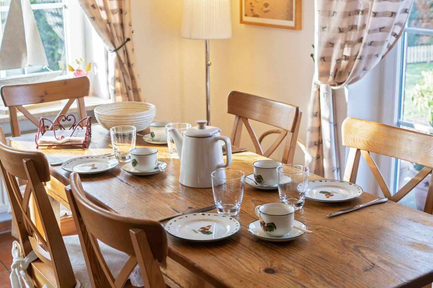 Das luxuriöse Ferienhaus Heike, das sich im Landhausstil präsentiert, zeichnet sich durch ihre hochwertige Ausstattung aus. Mit einer Fläche von 128 Quadratmetern bietet sie sechs Personen und einem Kleinkind bequem Platz. Das Nichtraucher-Haus ist mit Terrakottafliesen und Parkett vollständig eingerichtet und daher besonders ansprechend. Auch Familien mit kleinen Kindern sind hier bestens aufgehoben: Es ist ein Kindergitterbett sowie ein Hochstuhl vorhanden.