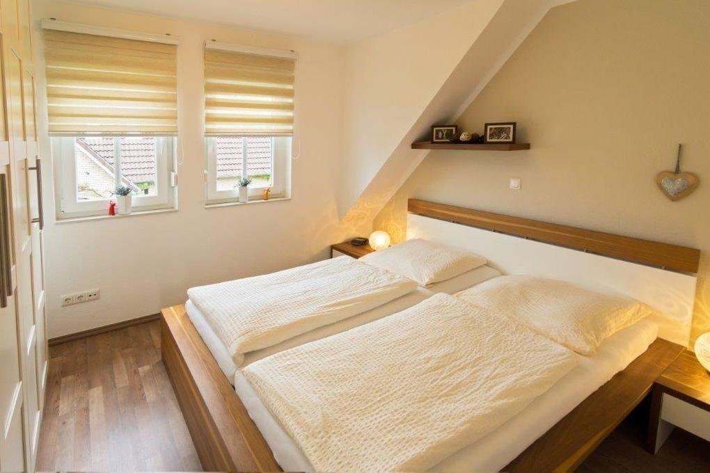 Die beiden Schlafzimmer dieser Wohnung sind mit einem Doppelbett ausgestattet, ein Schlafraum liegt im Obergeschoss, das andere Schlafzimmer dieses verfügt über 2 getrennte Betten. Im Schlafzimmer 2 befindet sich ein LCD-Fernseher. Zum Interieur gehören zwei Nachttische, ein Wecker oder Radiowecker und Nachttischlampen. Der Kleiderschrank mit Kleiderbügeln reicht für Ihre Urlaubsgarderobe aus. Für die Jüngsten steht ein zustellbares Reisekinderbett zur Verfügung.