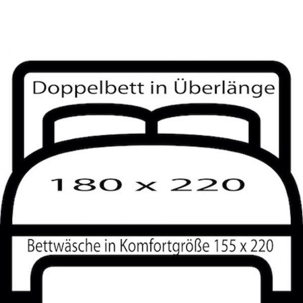 Allergiker gerechte Ausstattung, mit Kopfkissen und Oberbetten aus kochfester Mikrofaser, hochwertigen Markenmatratzen mit Encasing. Doppelbett in Übergröße und Komforthöhe für einen bequemen Ein- und Ausstieg.