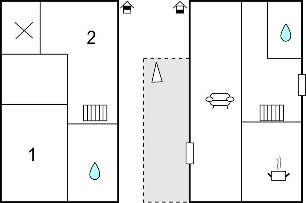 Ovenpå er der to soveværelser, hver med en dobbeltseng. Der er også et garderobeskab i et af de to soveværelser. I det andet soveværelse er der også en lille sammenklappelig sofa. På denne etage finder du også et badeværelse med bruser.