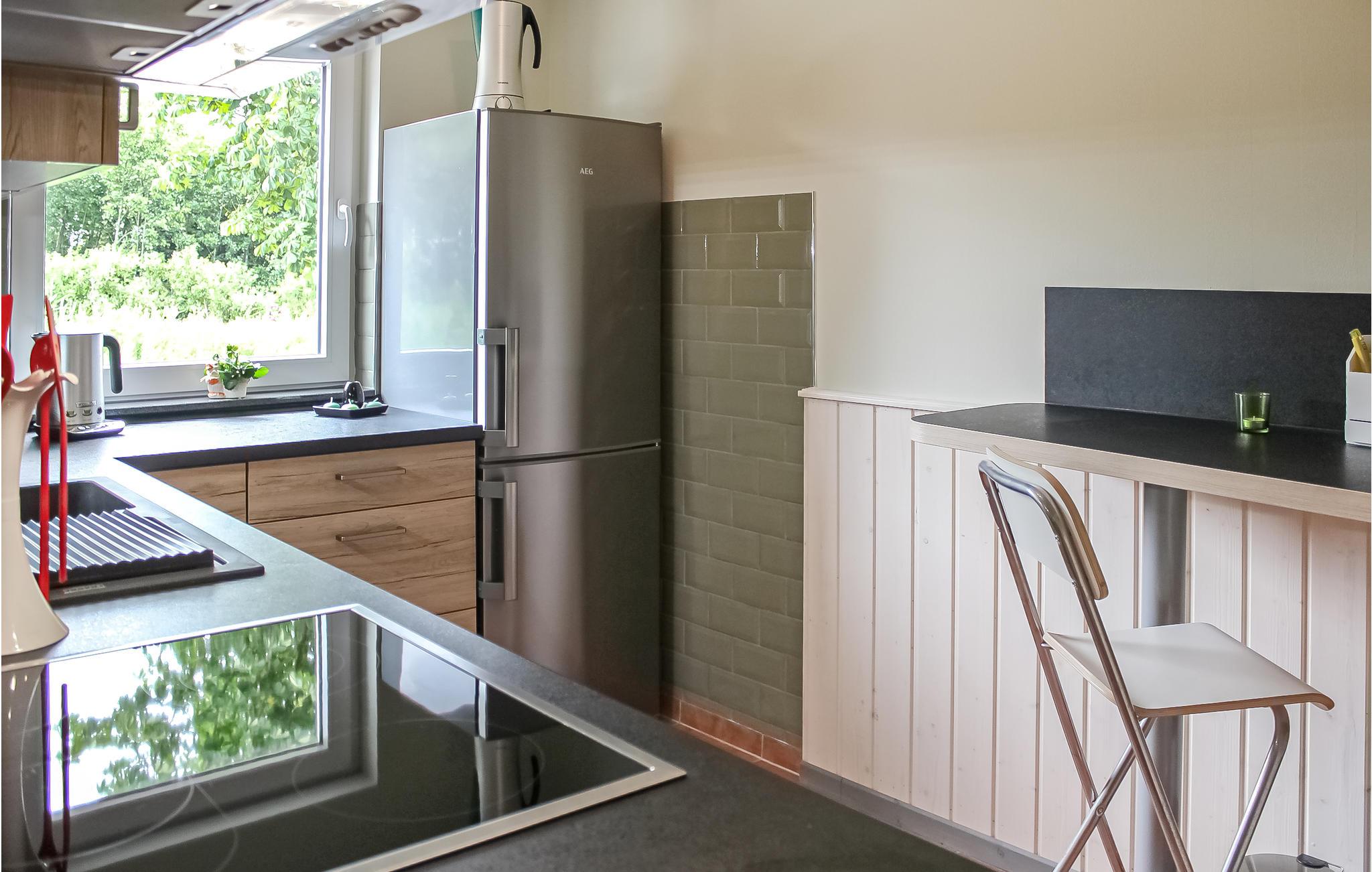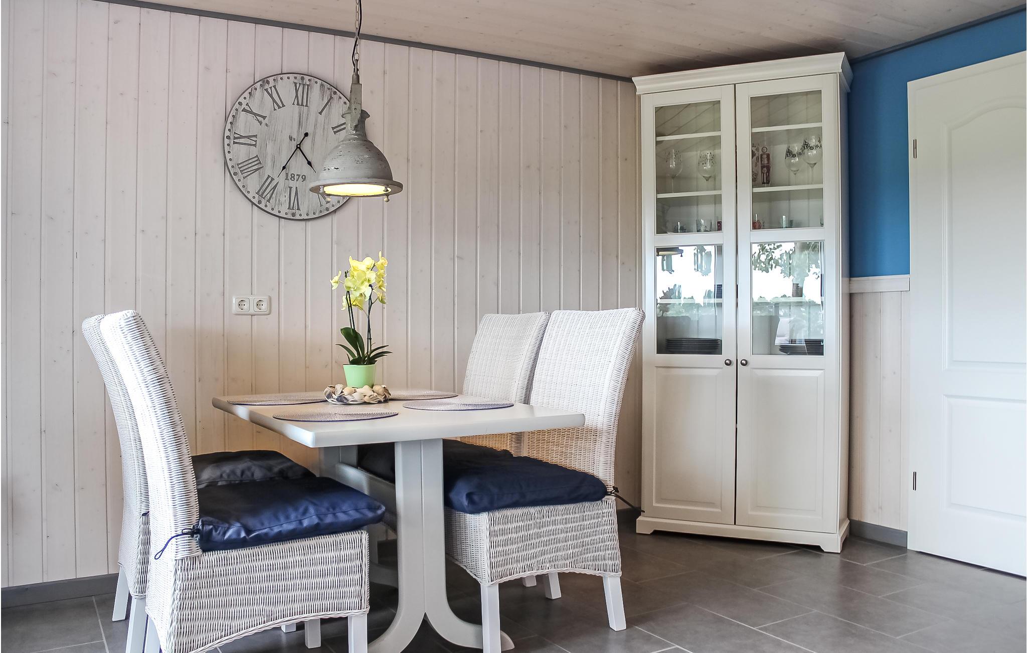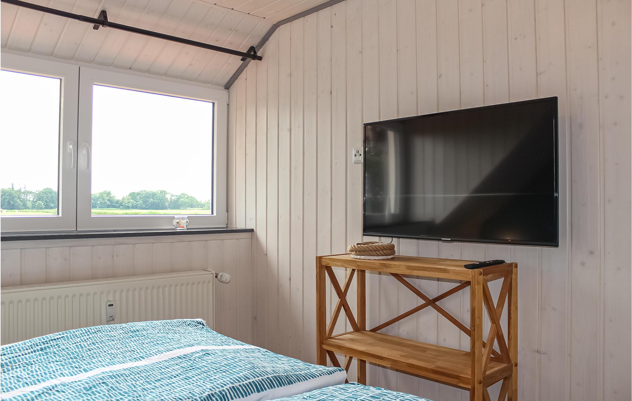 Den rummelige stue med spiseplads tilbyder plads til fire personer. Herfra har du adgang til terrassen med en lille have og en stor murstensgrill. Nyd udsigten over de store felter i Østfriesland herfra. Lige ved siden af ??din have kan du se en besætning af malkekøer, der græsser.