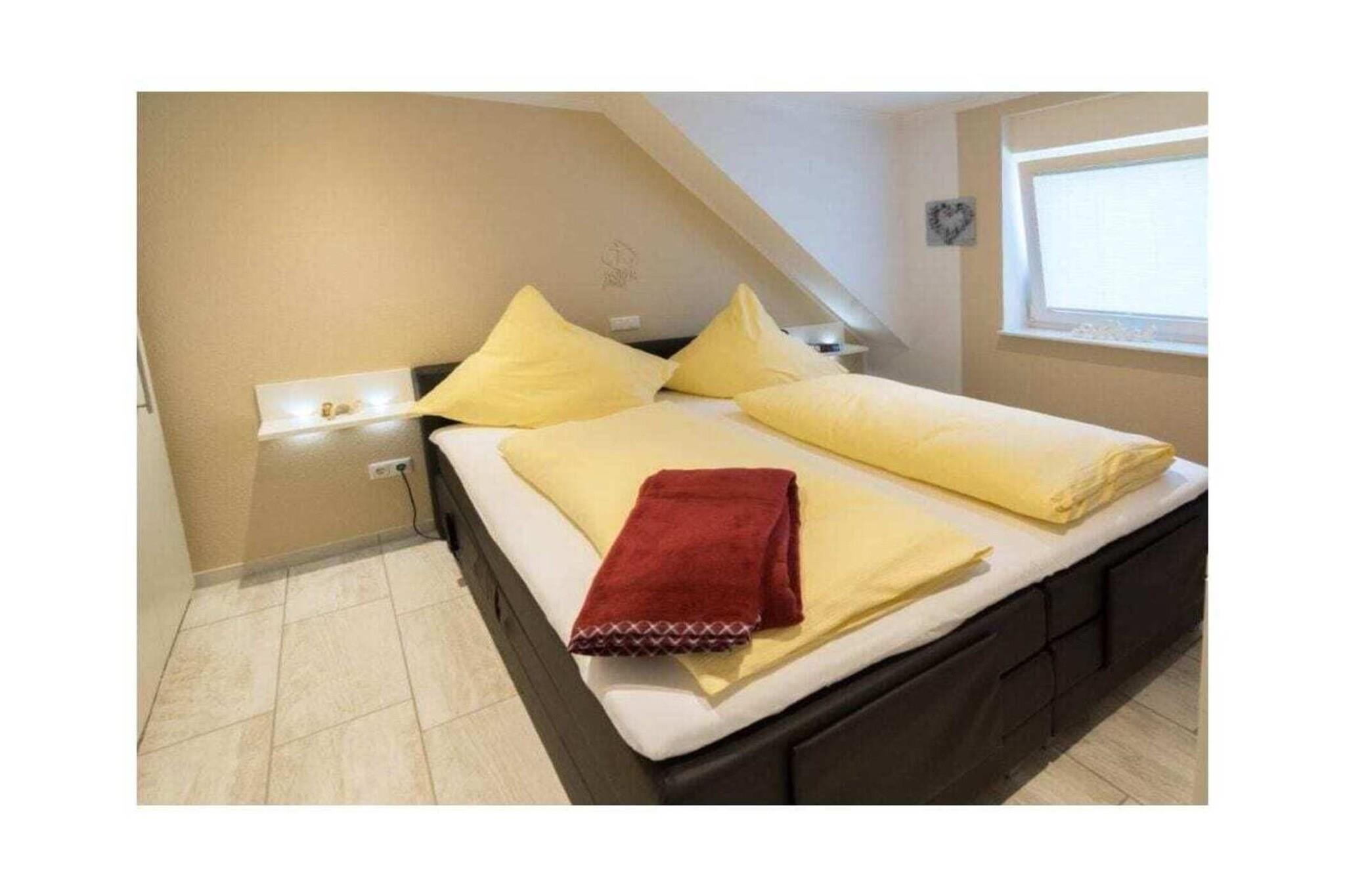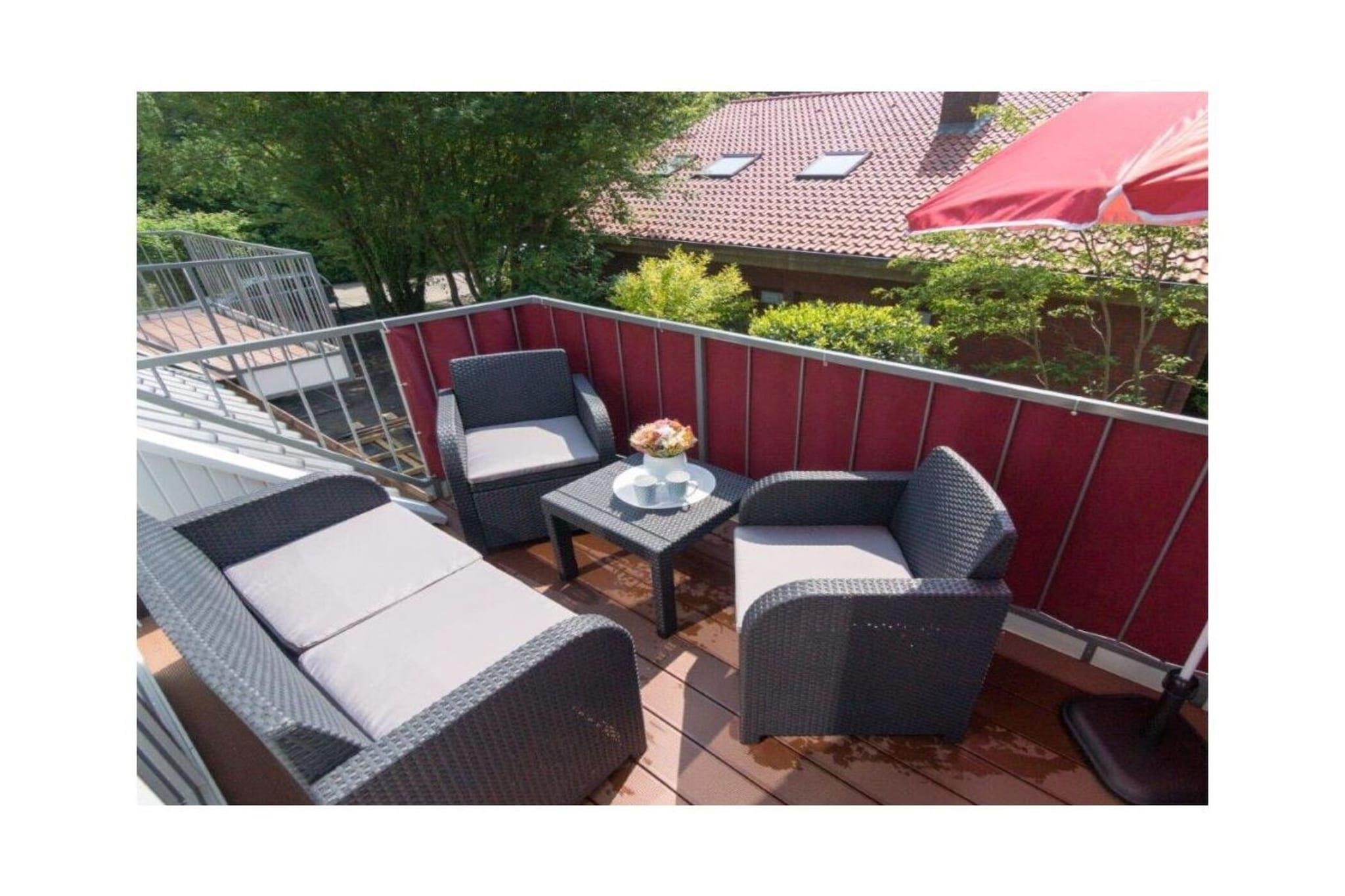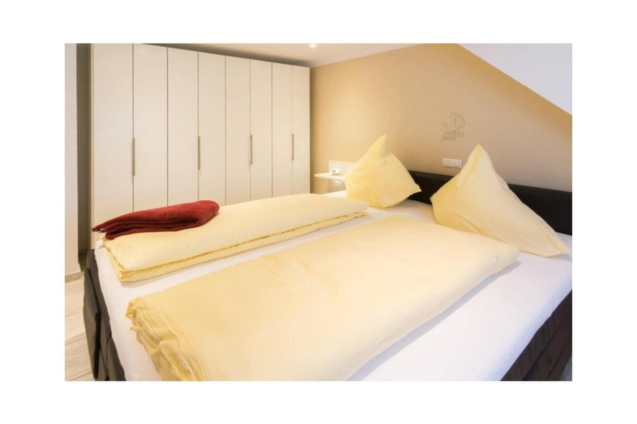 Holiday apartment Ankerplatz D7 Ankerplatz D7 is a holiday apartment for guests who love comfort and class even on holiday. Only completed in 2016, this property is particularly modern and luxurious. The interior was chosen with care and good taste. The maritime charm is noticeable everywhere, but is completely subtle. With the double room including a comfortable electrically adjustable box spring bed and the youth room with a single bed, the holiday apartment Ankerplatz D7 is ideal for 2 people with a child aged 5 and over. You can cook to your heart's content in the large, cozy kitchen. Amenities such as an oven with ceramic hob, a refrigerator with freezer compartment, a microwave, a dishwasher, a Senseo coffee machine, a filter coffee machine, a toaster, an egg cooker, a kettle and a blender are available. Full entertainment awaits guests in the cozy living area. Flat-screen TV with Internet functions such as Netflix, U-Tube and media library, plus a Blu-Ray DVD player and a CD player leave nothing to be desired. All shutters can be controlled electronically. You can also electronically adjust the underfloor heating to the desired temperature. The holiday apartment also has a storage room in which you can use a washing machine free of charge, a vacuum cleaner, dustpan & broom, clothes rack with clothespins, ironing board and iron. There is a storage room outside where you can safely park your bicycles. For a carefree start to your vacation, book our linen package. This consists of bed linen, towels, shower mats, tea towels and a service set (toilet paper, dishwasher tablets, garbage bags, dish brush, cleaning cloths and other small helpers) for a carefree start to your vacation.