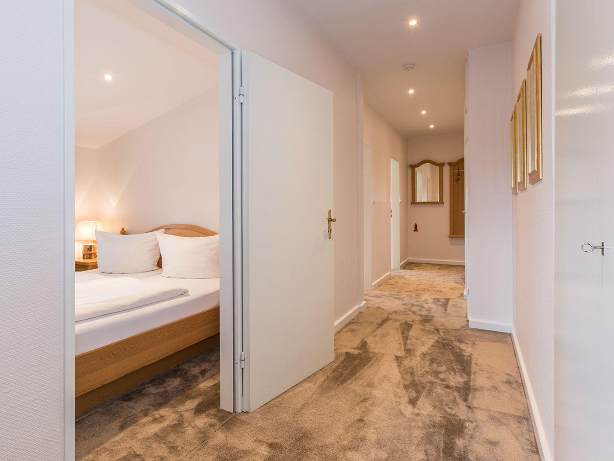 Das Appartement 4 befindet sich im Haupthaus der Anlage im Obergeschoss .