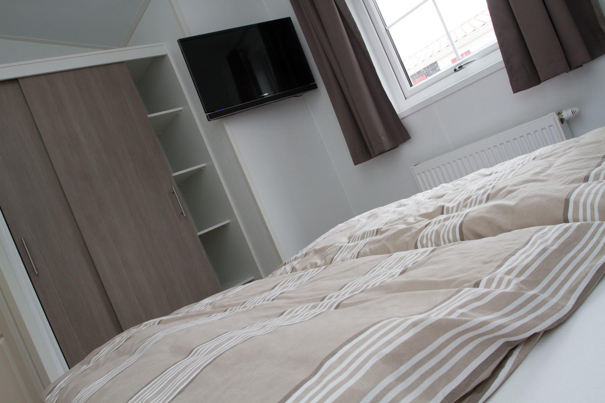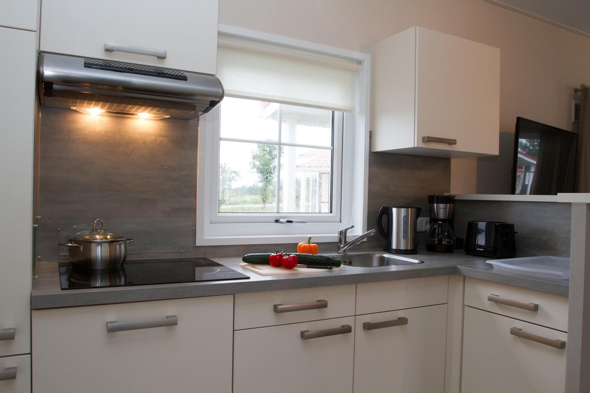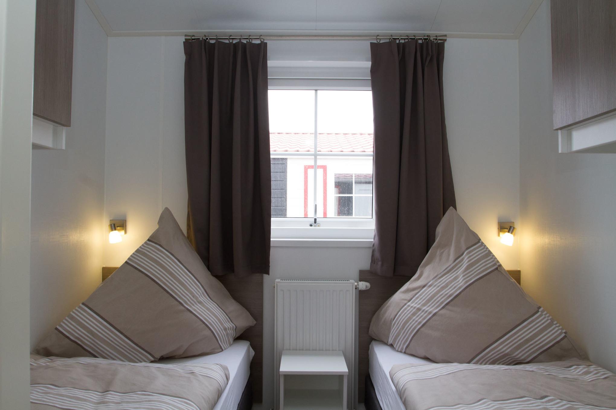 Ferienhaus mit rd. 45m² groß und Platz für bis zu vier Personen. 2 Schlafzimmer (eines mit Doppelbett und TV, eines mit zwei Einzelbetten), 1 Badezimmer. Großer Wohnraum mit Küche, Sitzgelegenheiten und Unterhaltungsmedien (TV). Im Außenbereich gibt es einen Stellplatz für Ihr Auto und die Terrasse lädt zum gemütlichen Verweilen ein. Das Restaurant im Nordseecamp Norddeich ist von Ende Oktober bis Mitte April geschlossen.
