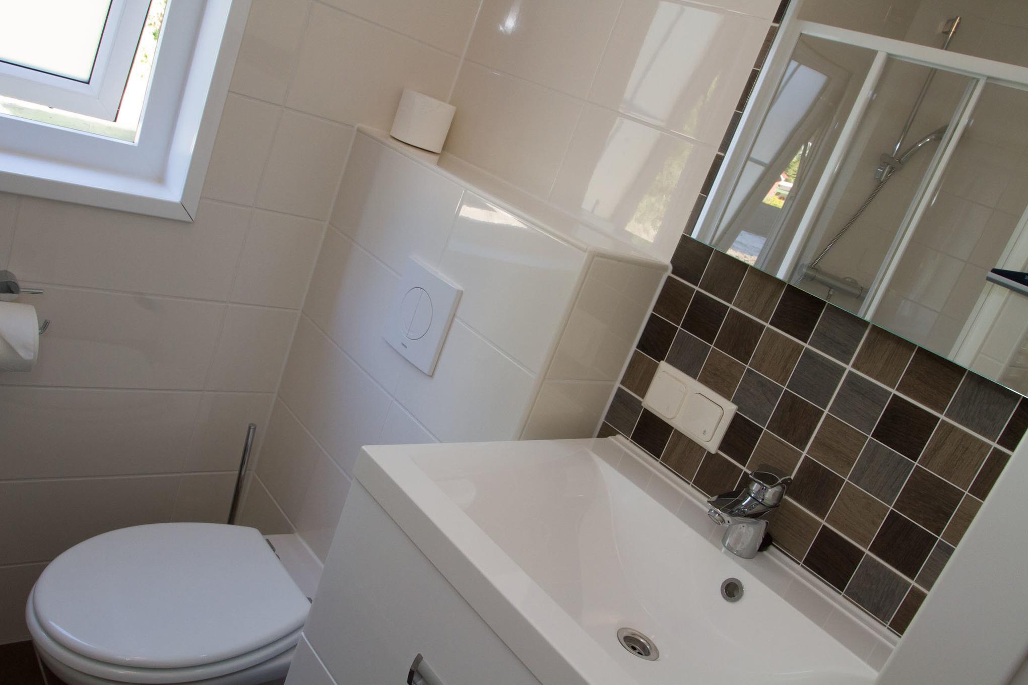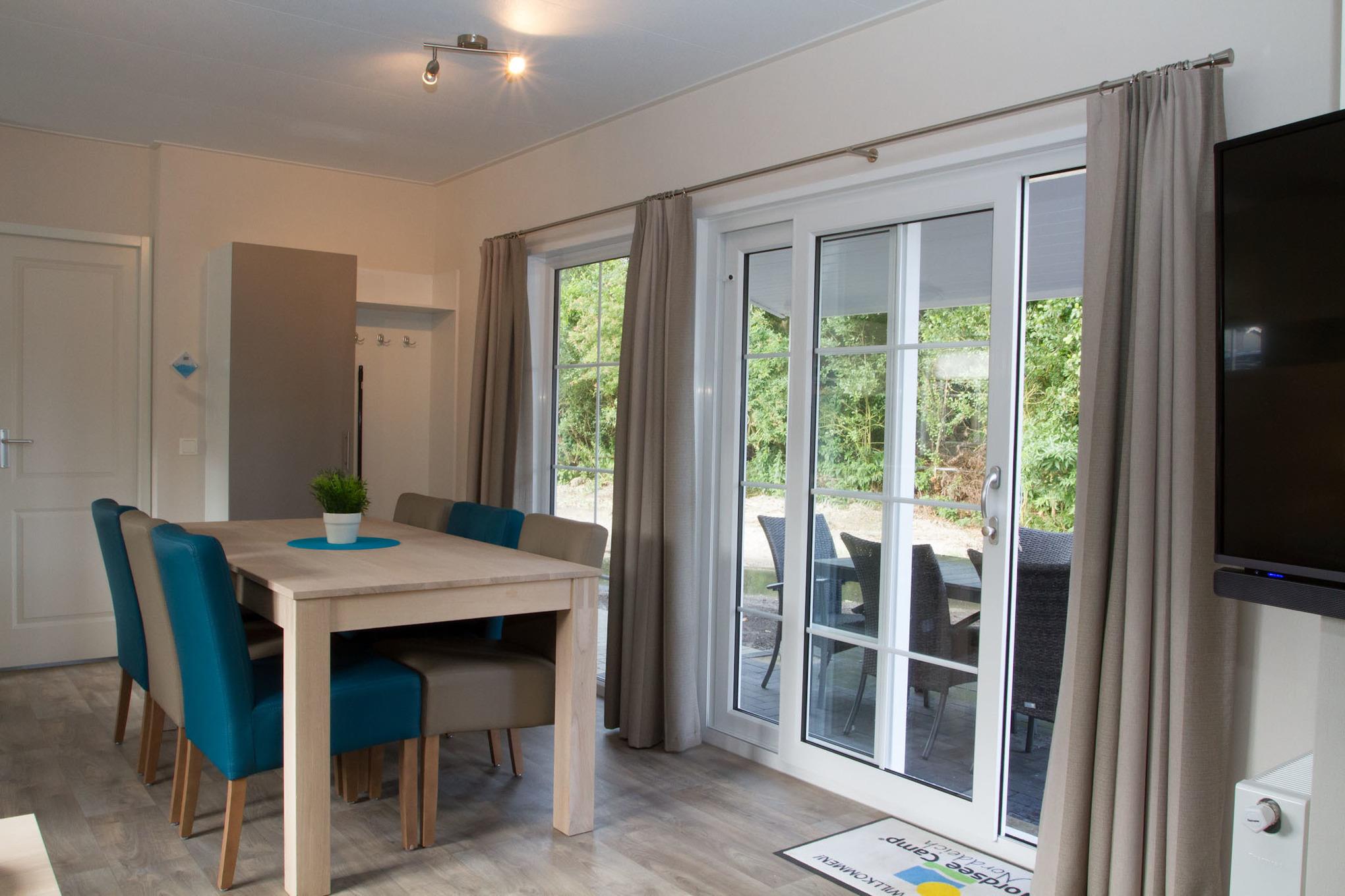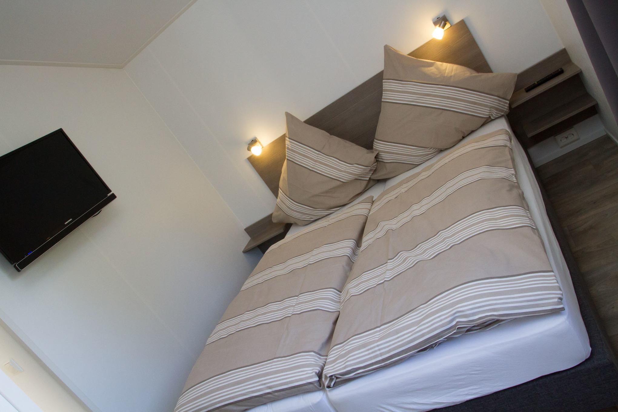 Ferienhaus mit rd. 50m² und Platz für bis zu sechs Personen. 3 Schlafzimmer (davon 2 mit TV und 1 mal Etagenbett), 2 Badezimmer. großer Wohnraum mit Küche, Sitzgelegenheiten und Unterhaltungsmedien (TV). Im Außenbereich gibt es einen Stellplatz für Ihr Auto und die Terrasse lädt zum gemütlichen Verweilen ein. Die Chalets befinden sich in einem eigenen Parkareal unseres Platzes mit eigener Zufahrt.
