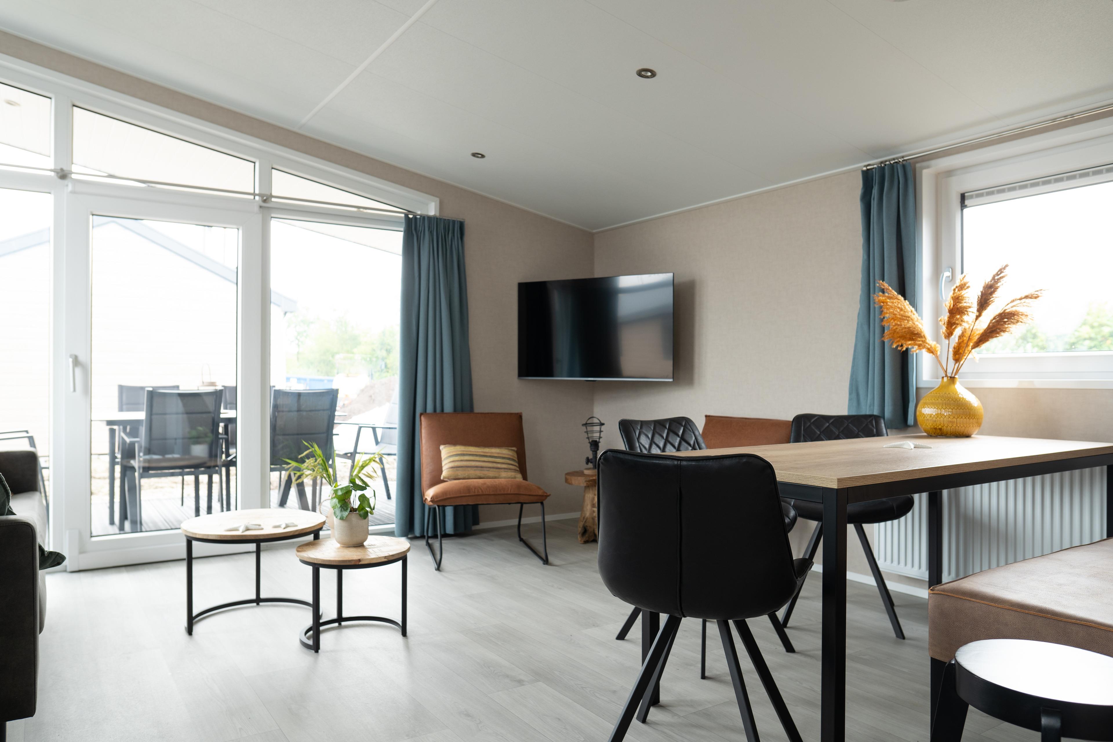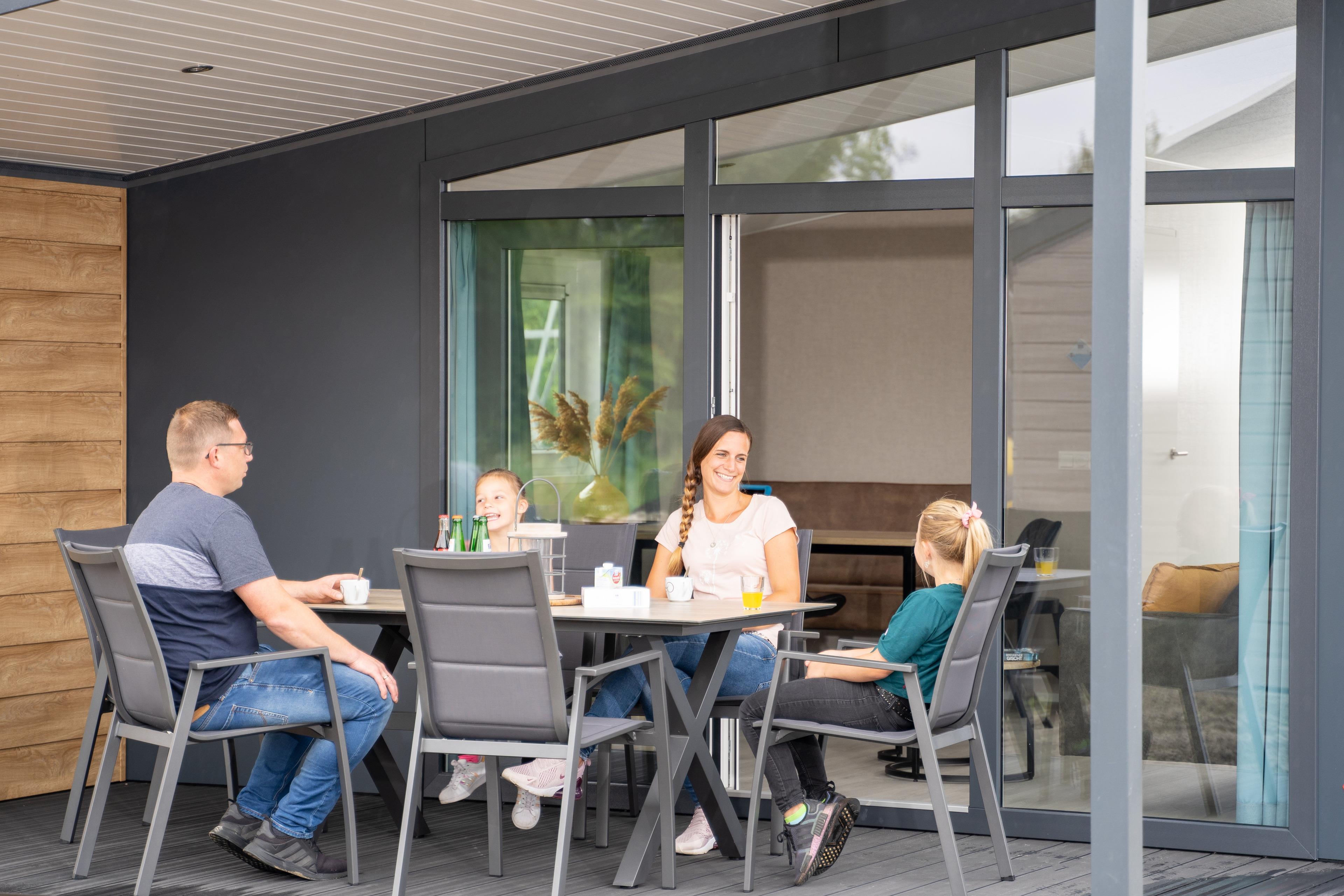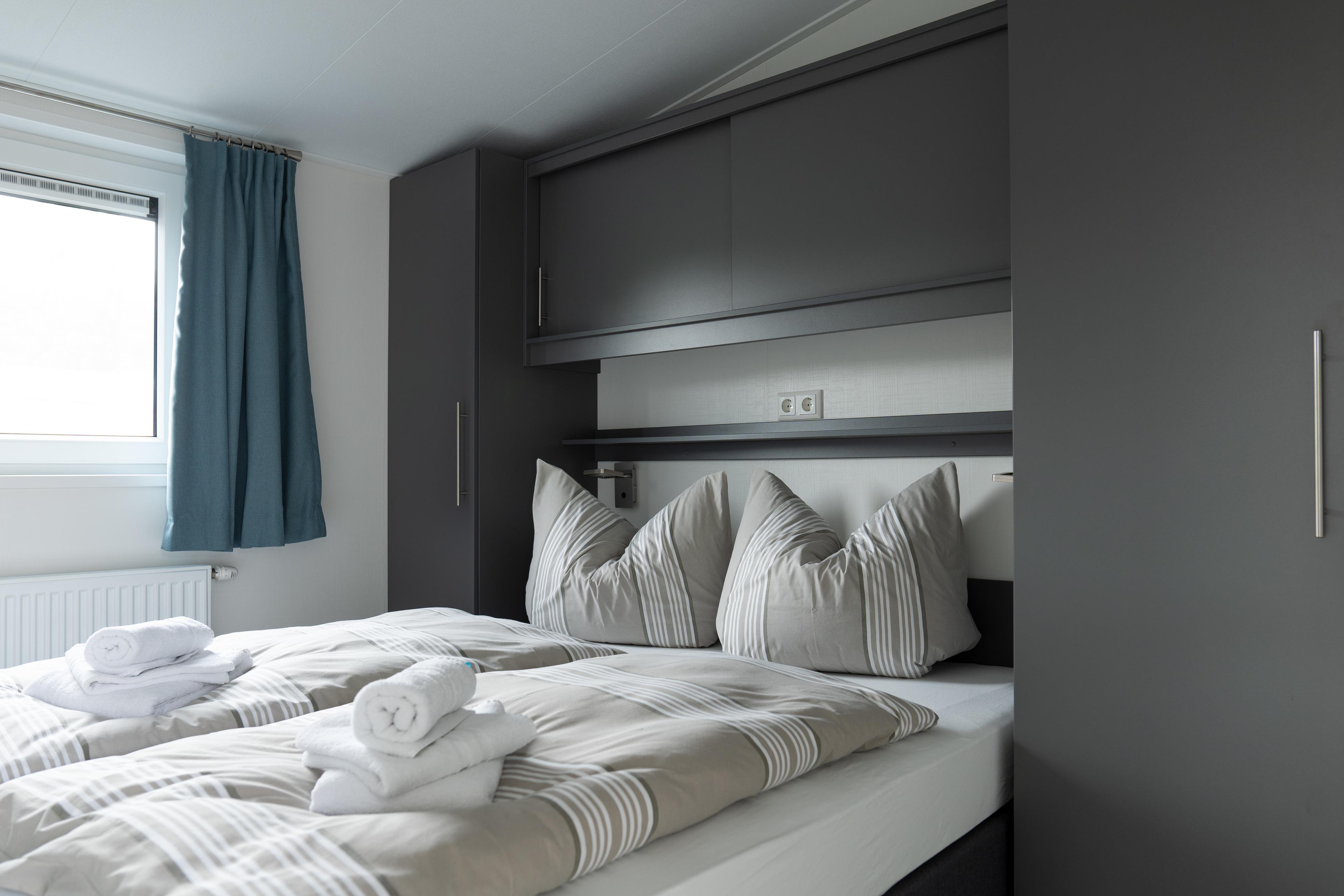 Ferienhaus mit rd. 46m² und Platz für bis zu sechs Personen. 3 Schlafzimmer (eins mit Doppelbett, eins mit zwei Einzelbetten, eins mit Etagenbett. Dazu ein Badezimmer und eine separate Toilette. Großer Wohnraum mit Küche, Sitzgelegenheiten und Unterhaltungsmedien (TV). Im Außenbereich gibt es einen Parkplatz für Ihr Auto und die Terrasse lädt zum gemütlichen Verweilen ein. Die Chalets befinden sich in einem eigenen Parkareal unseres Platzes mit eigener Zufahrt über den Campingplatz.