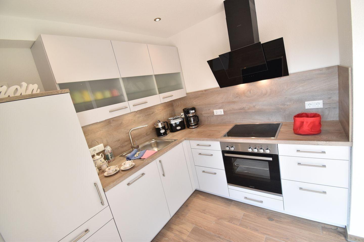 Der offene Koch -und Wohnbereich ist hell und modern eingerichtet und bietet eine Küchenzeile, einen schönen Essbereich und den angrenzenden Wohnbereich mit Sofa und Sessel zum Entspannen.